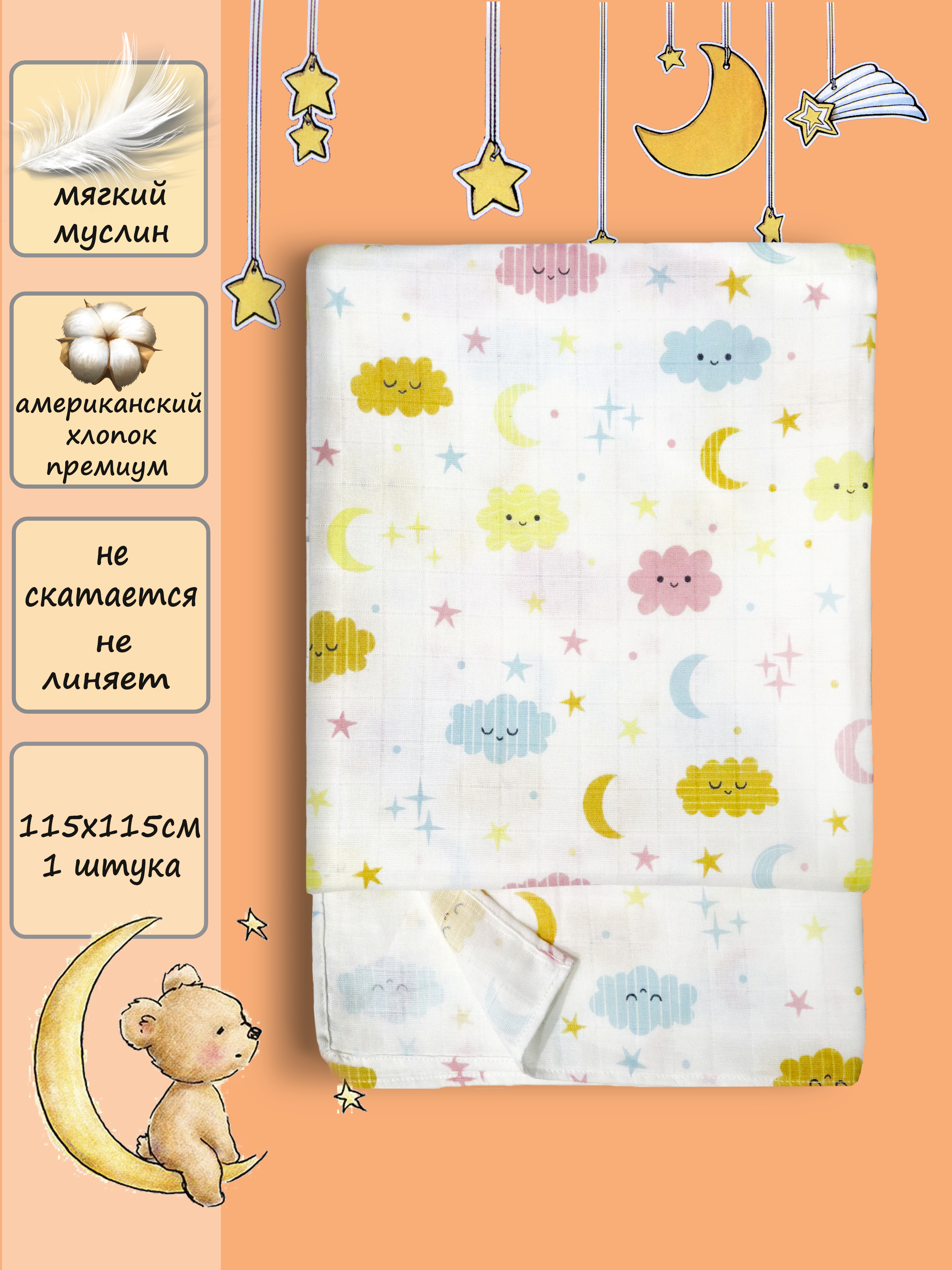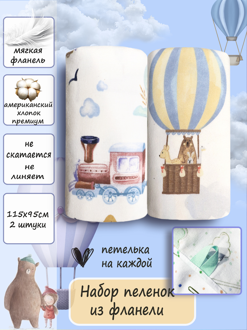 Пеленка текстильная Bu-Bu-Du 95 х 115 см, Фланель, 2 шт