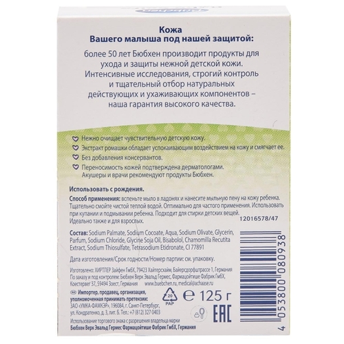Bubchen Шампунь детский с экстрактом ромашки и протеинами пшеницы