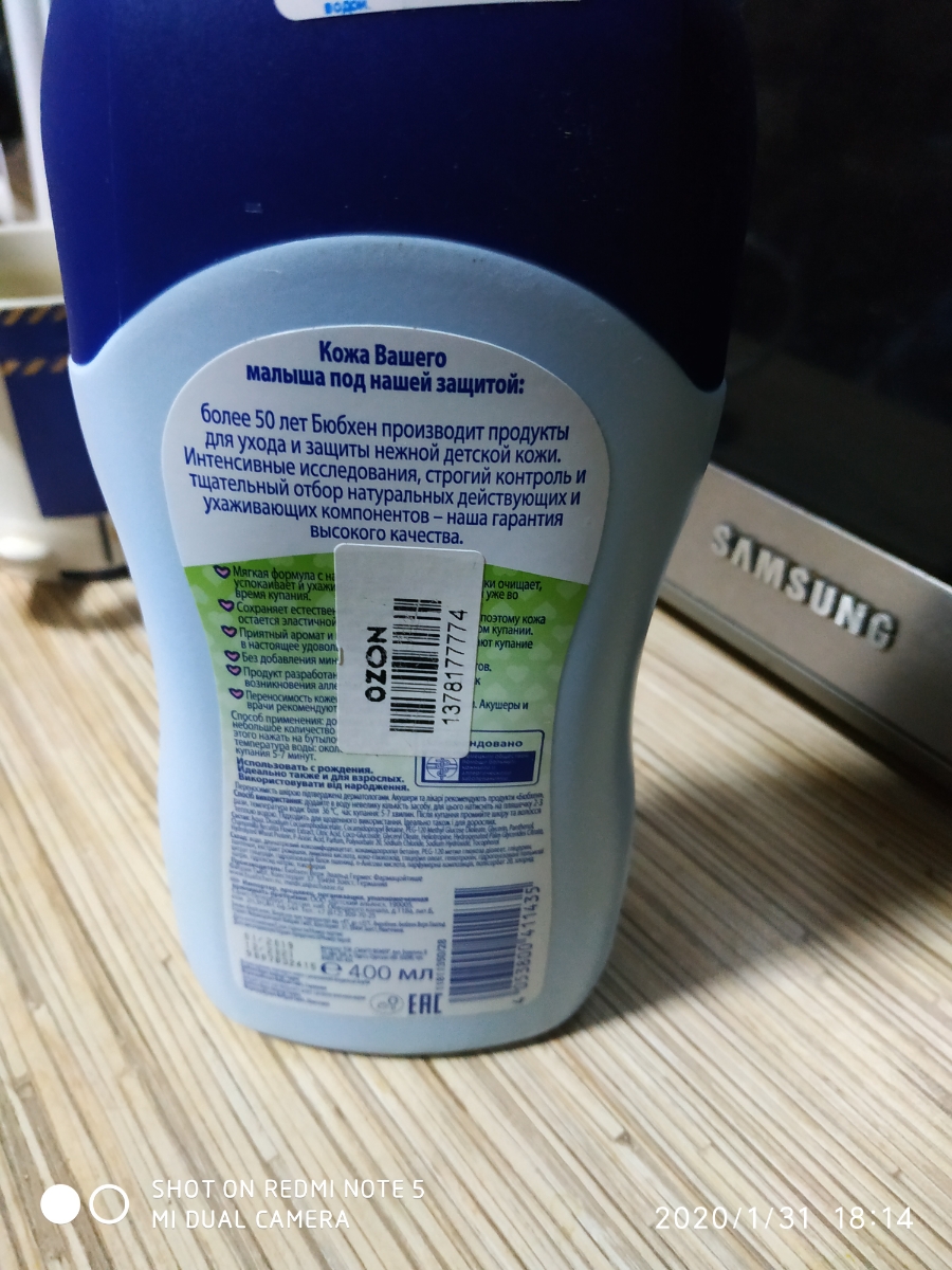 Bubchen Шампунь и средство для купания младенцев 400 мл + Губка 7 морей