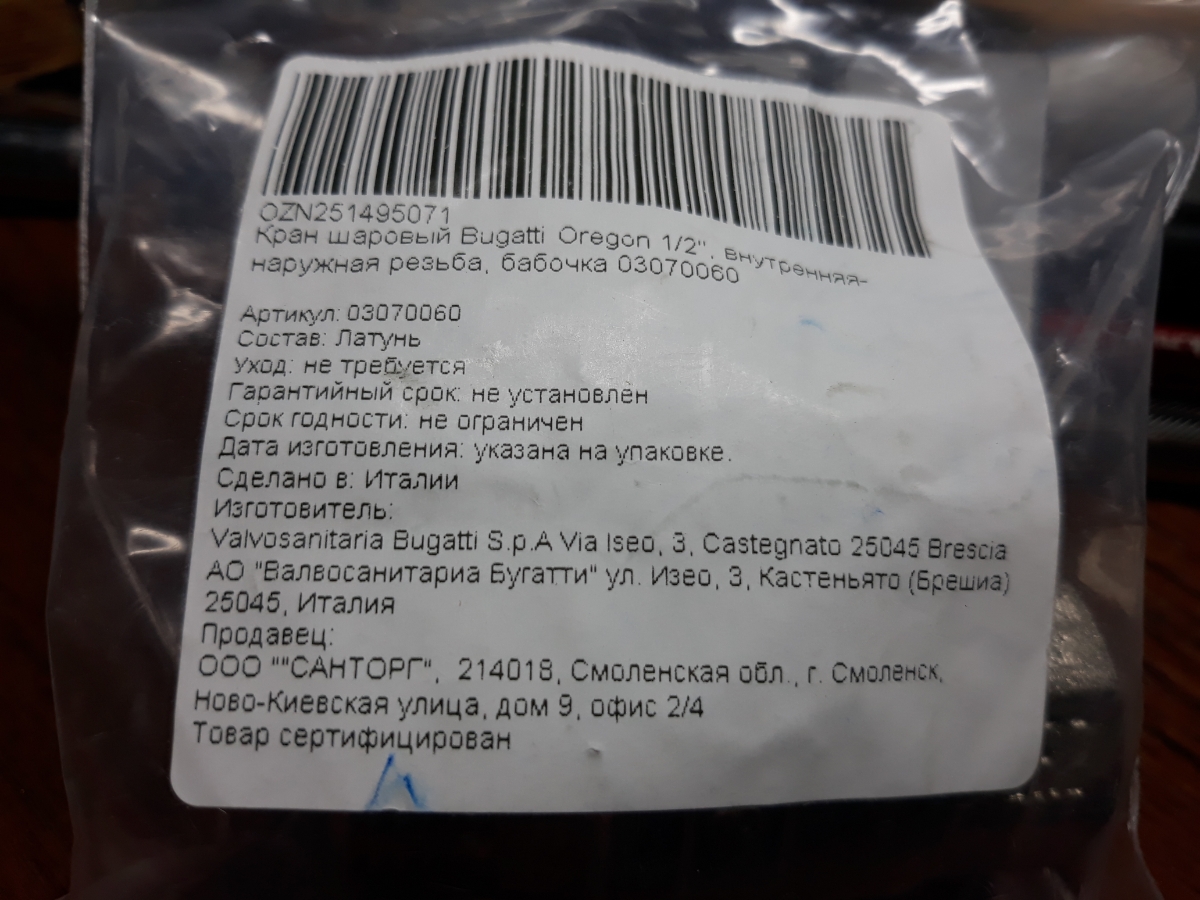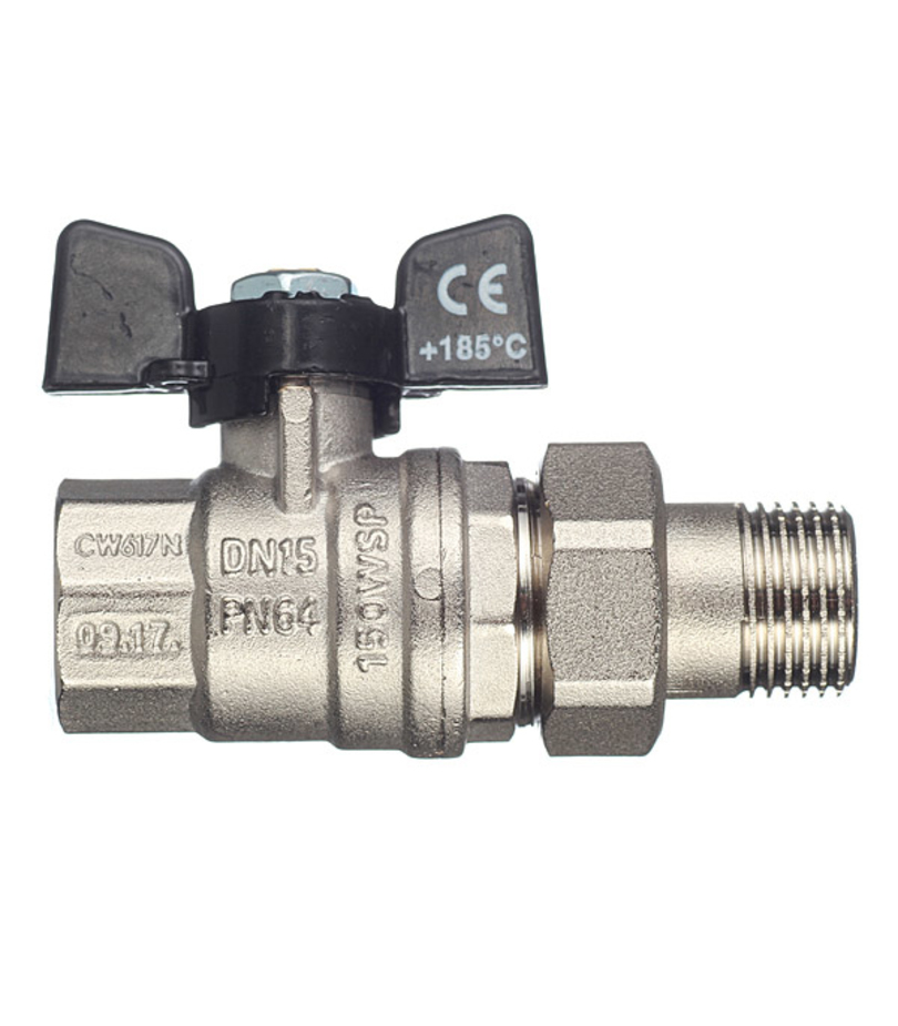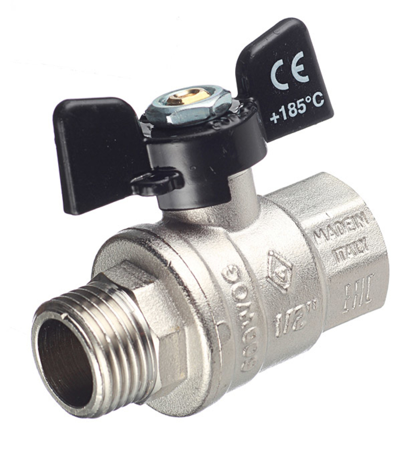 Кран шаровой латунный Bugatti OREGON 327 1/2 НР(ш) х 1/2 НР(ш) бабочка прямой