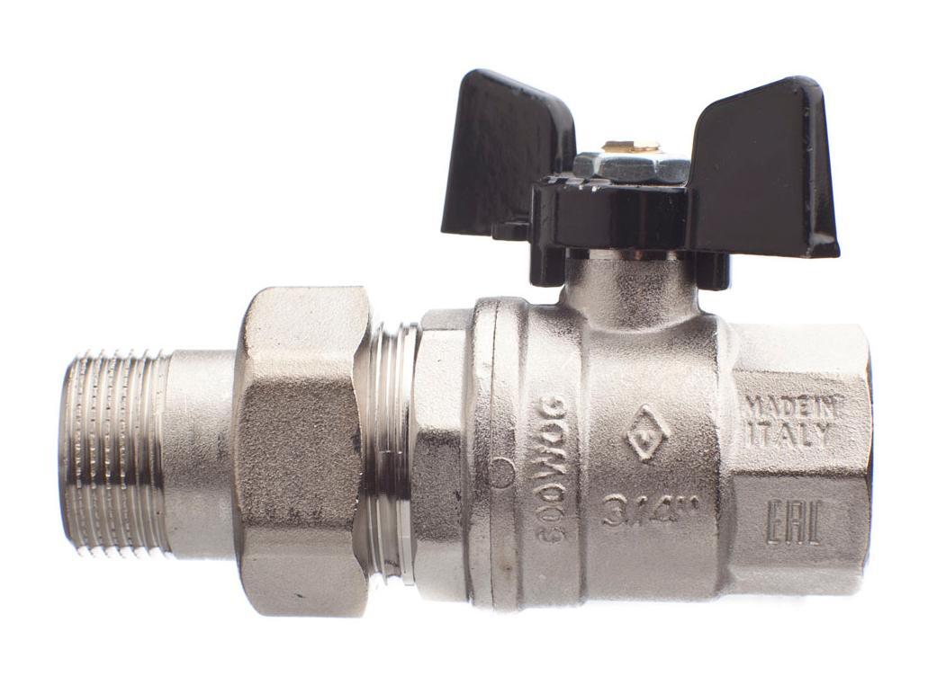 Bugatti Кран шаровый , полнопроходной, Американка 3/4 ручка "бабочка"