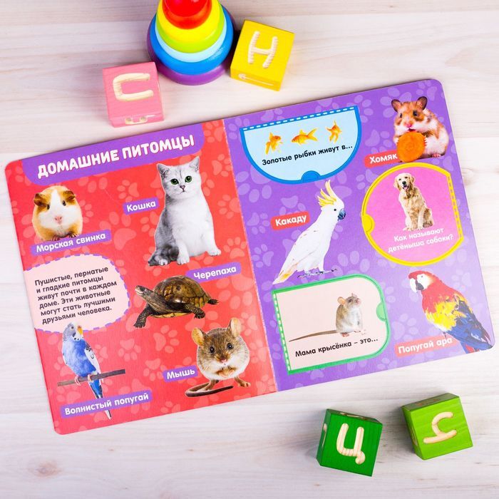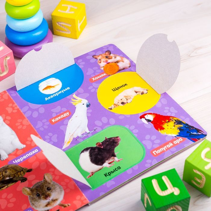 Развивающая книга с окошками "Животные" для детей, развитие мышления и моторики, 10 страниц