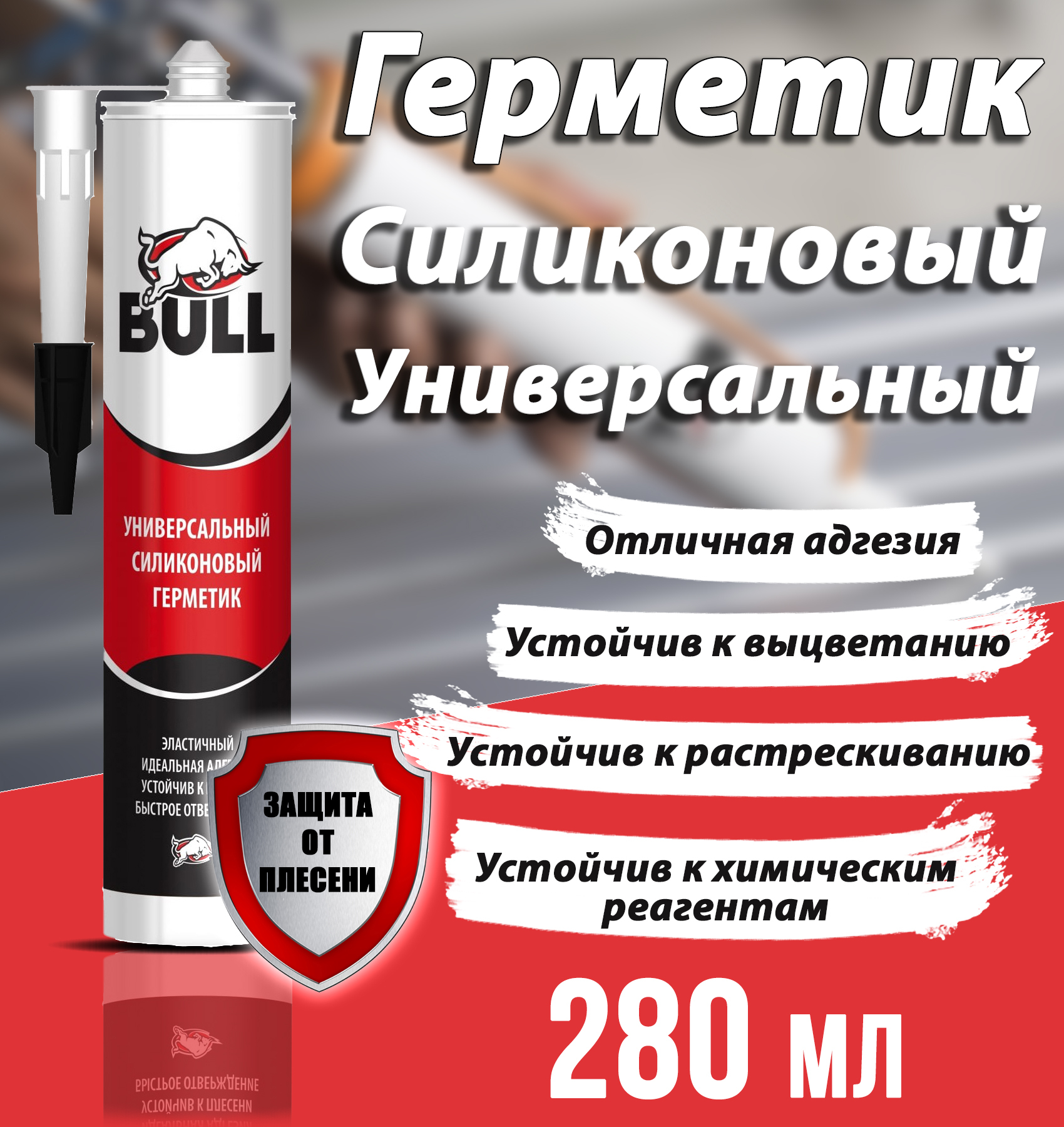 Герметик силиконовый универсальный, санитарно-гигиенический BULL BT101 прозрачный 280мл