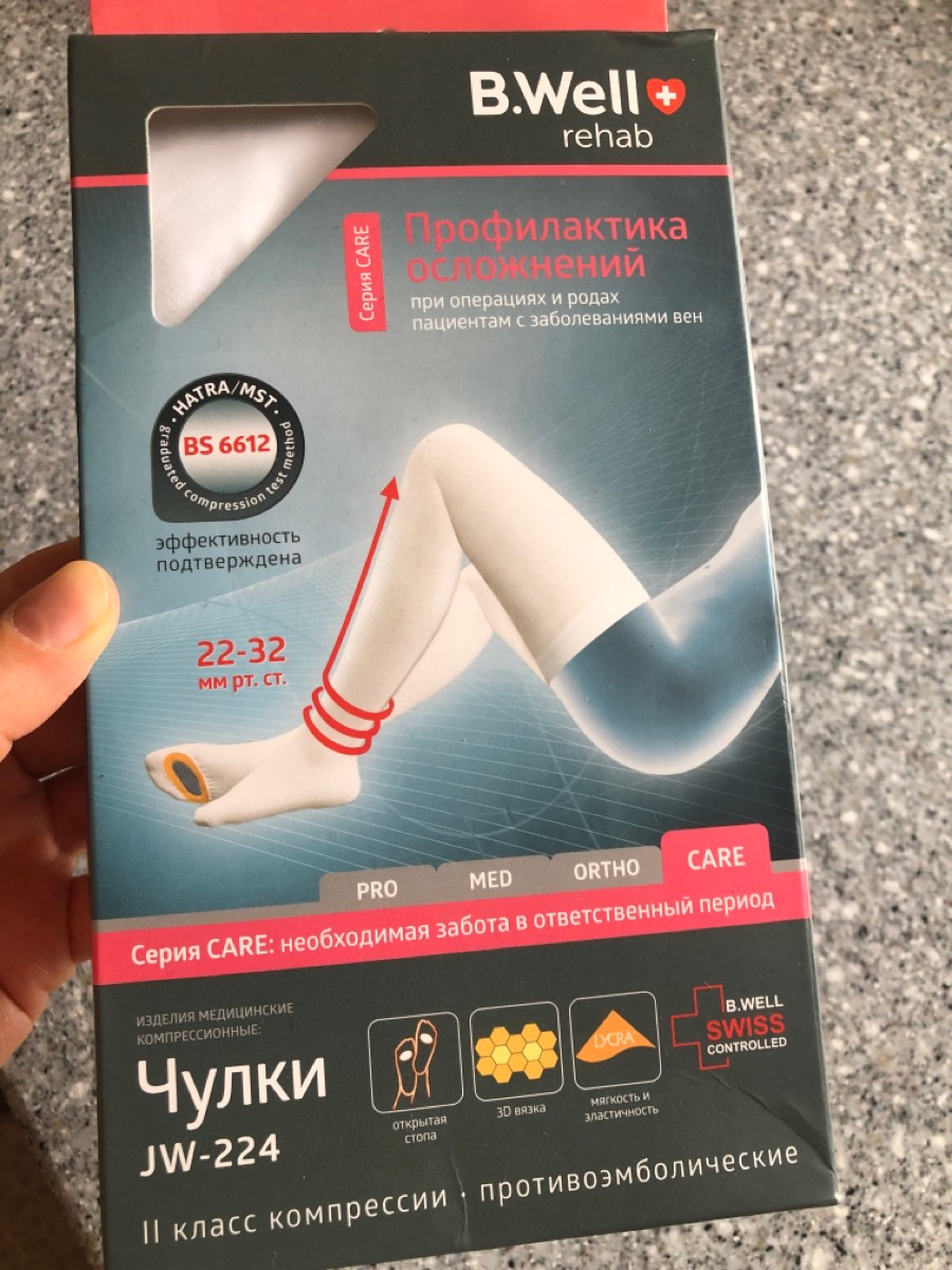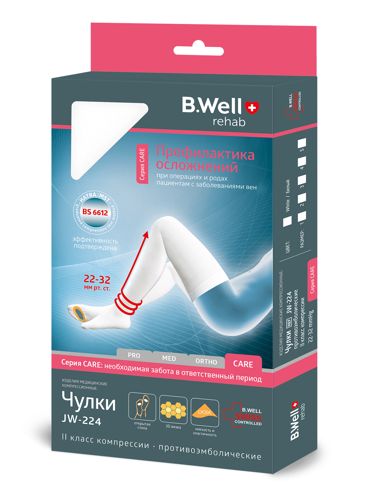 Компрессионные чулки B.Well белый, 2 класс компрессии
