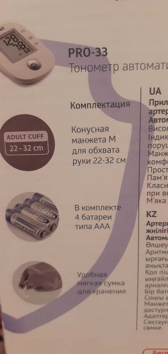 Тонометр B.Well PRO-33, автоматический, манжета 22-32 см, 4хААА, без адаптера