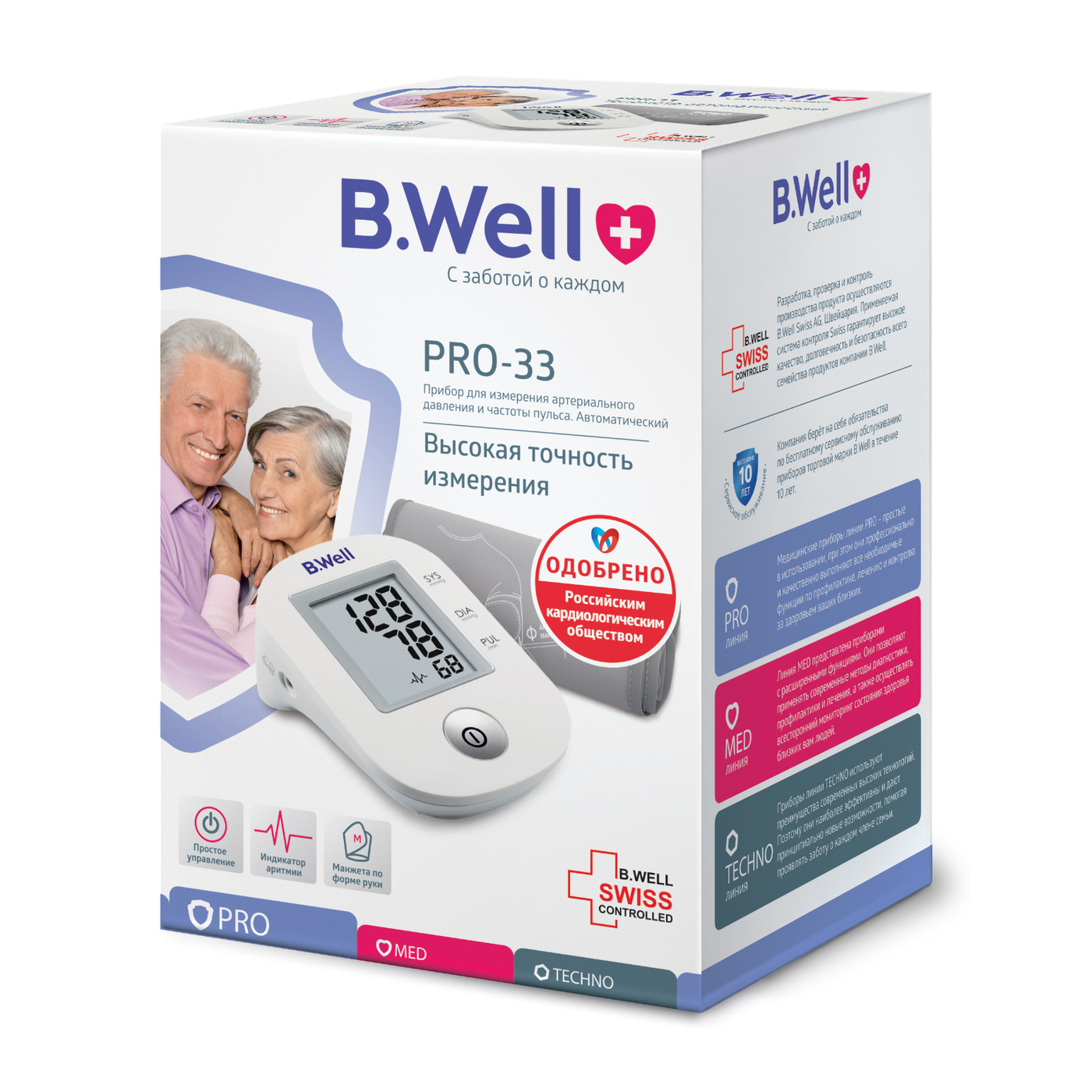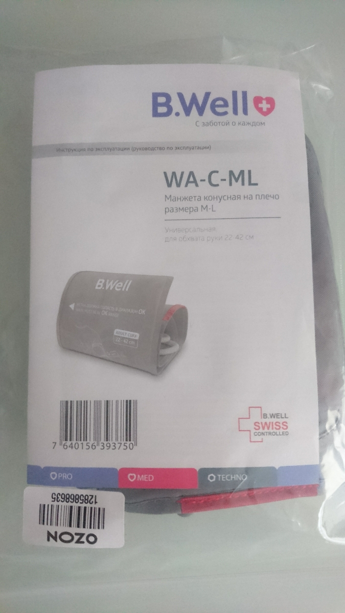 Тонометр B.Well PRO-33 + конусная манжета 22-32см, комфортное измерение с Intellect Classic