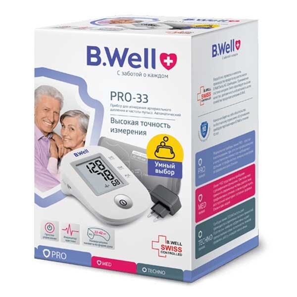 Тонометр B.Well PRO-33 (M-L) манжета (22-42 см), адаптер, индикатор аритмии