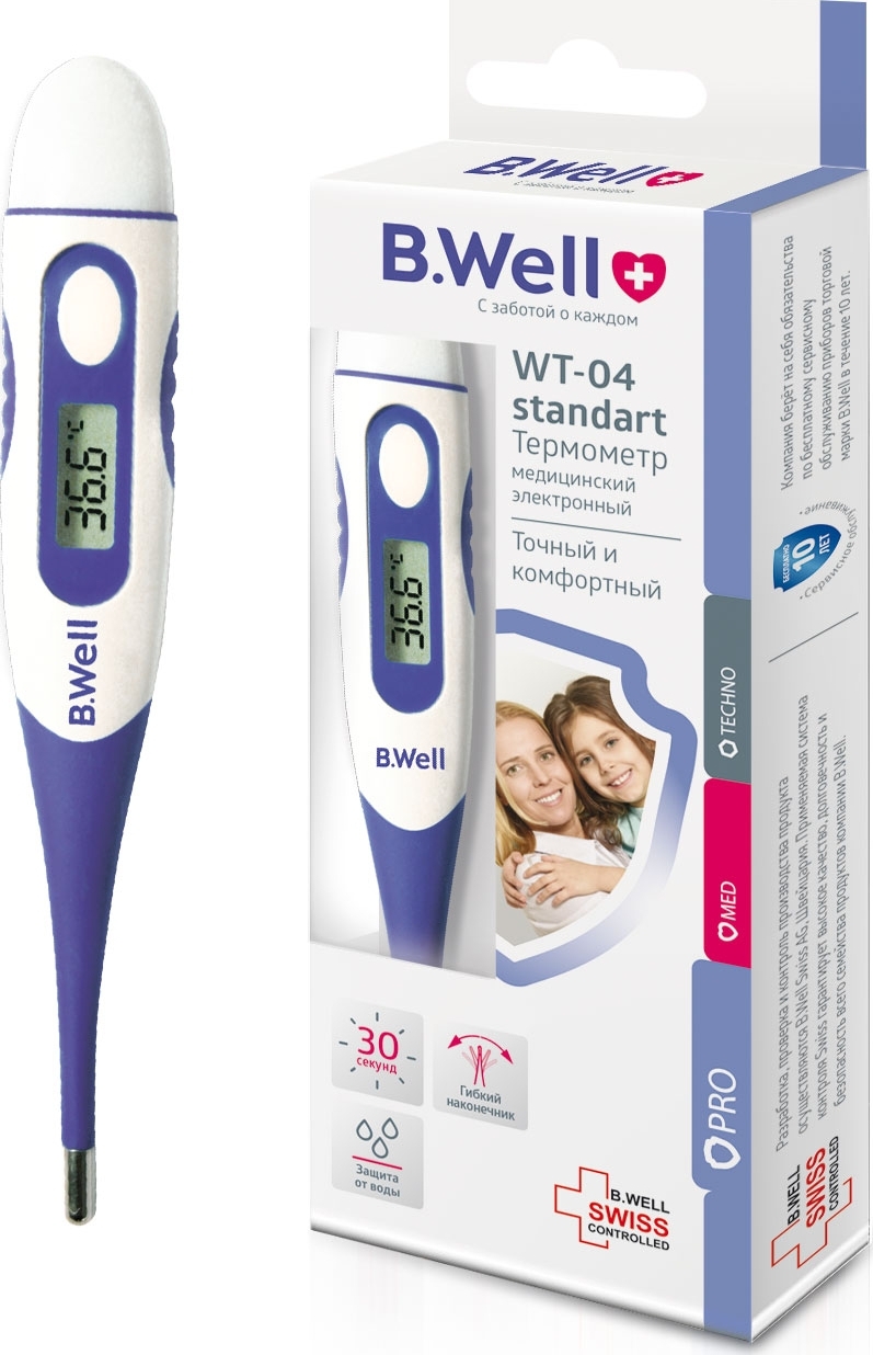 Термометр медицинский B.Well WT-04 электронный, гибкий наконечник, с футляром