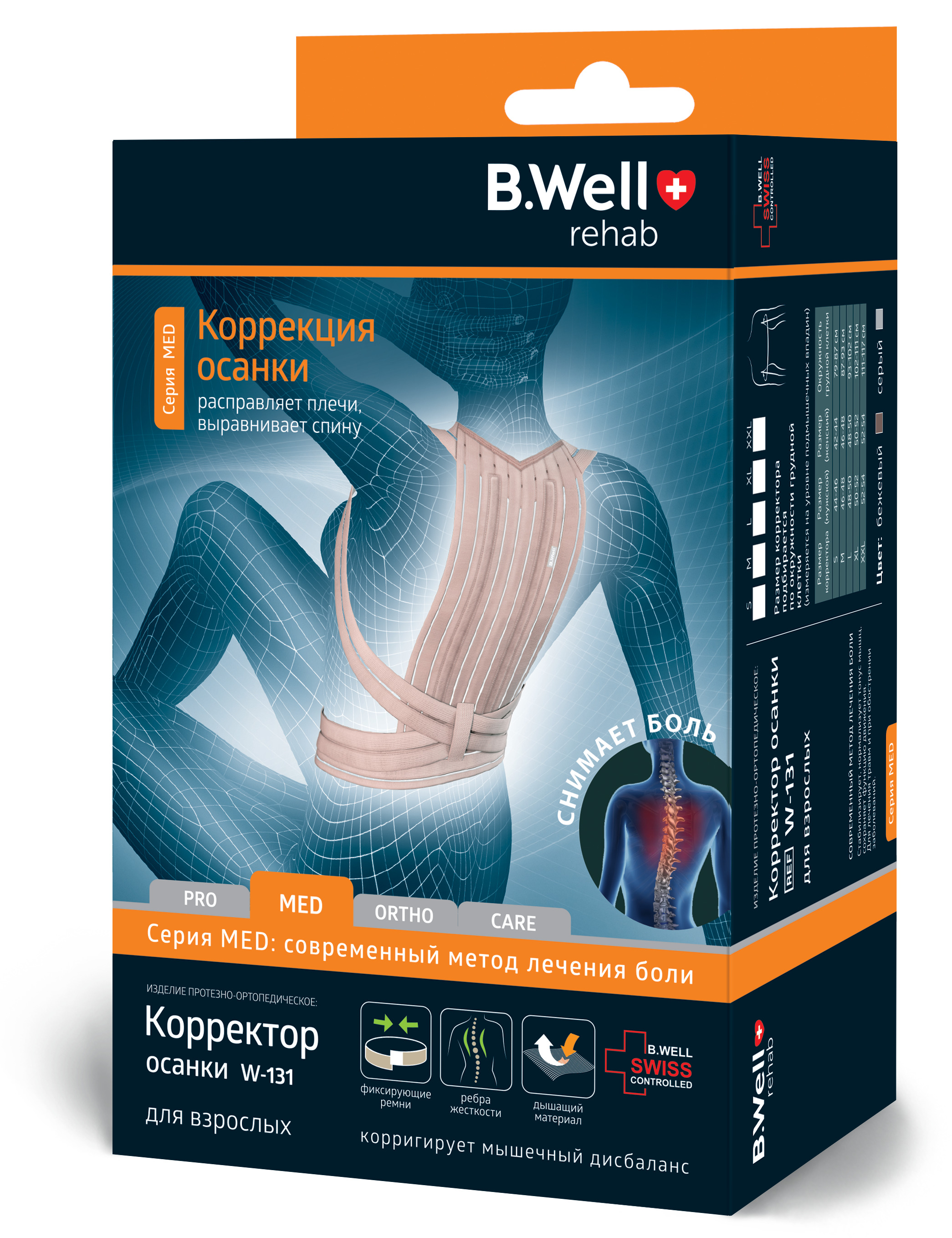 Корректор осанки B.Well с гибкими ребрами жесткости, взрослый, W-131