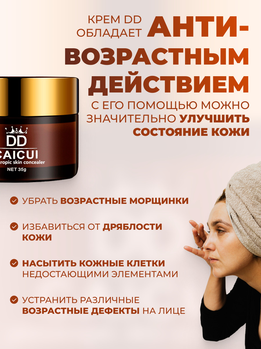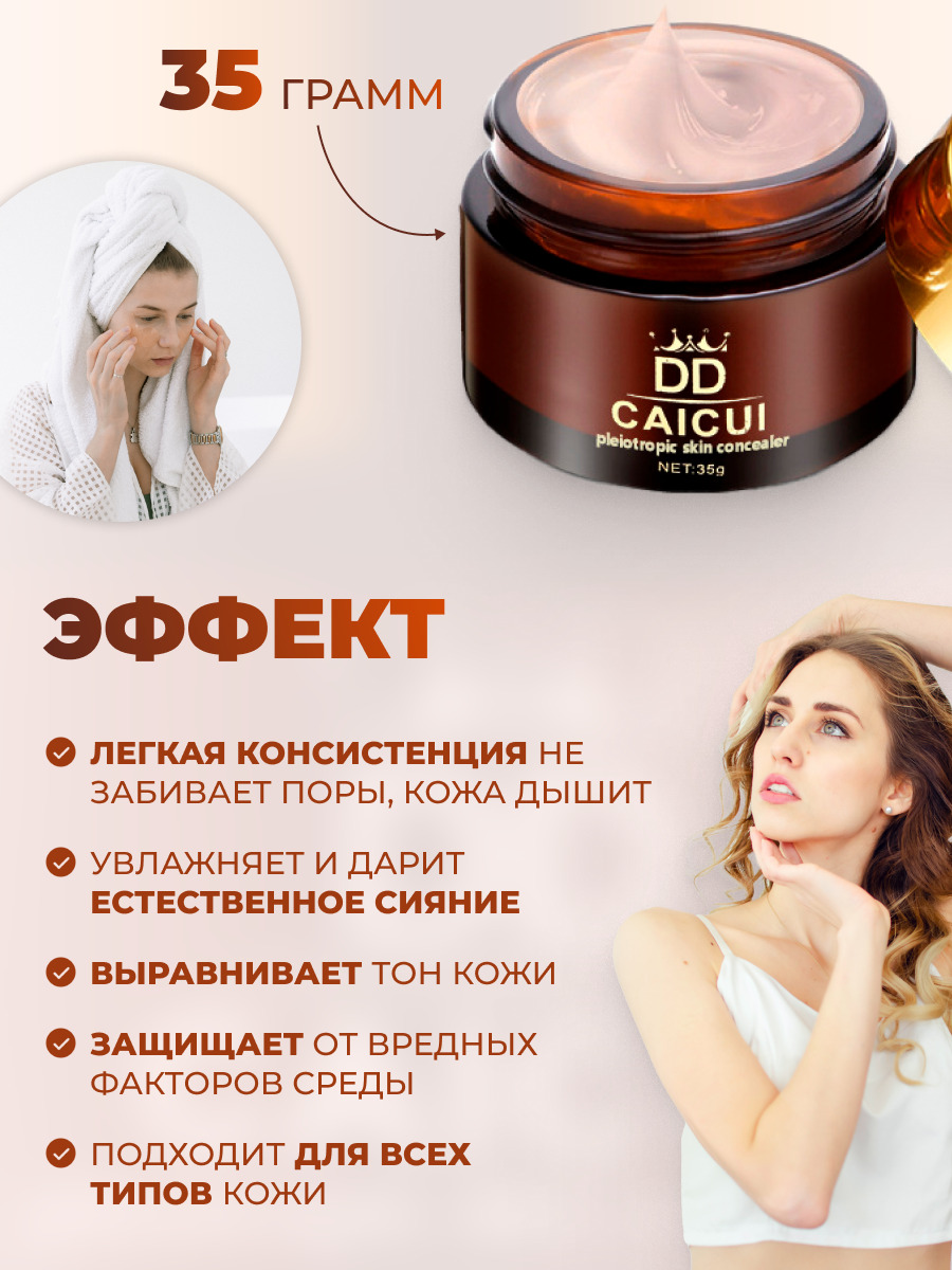 Caicui Тональный крем для лица. Увлажняющий крем DD для выравнивания тона кожи лица, 35г.