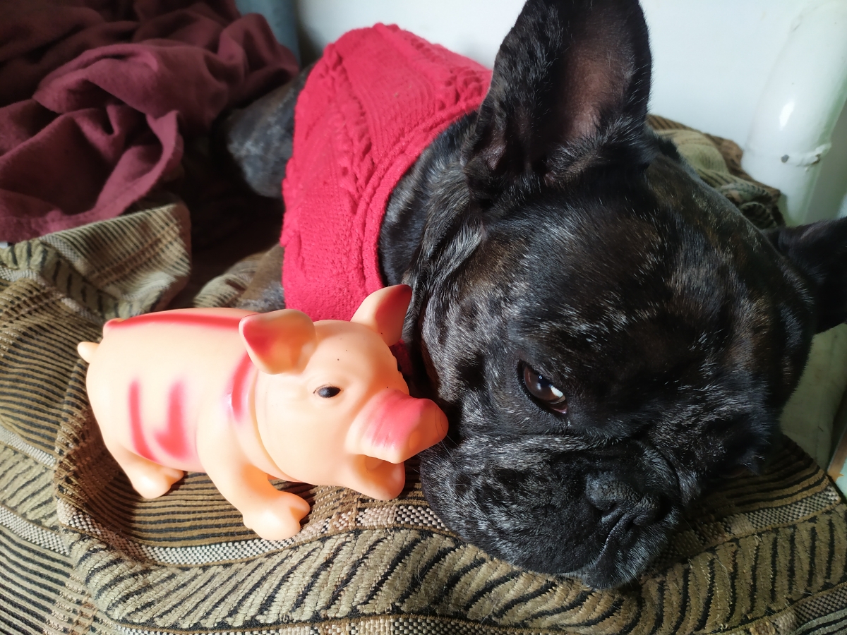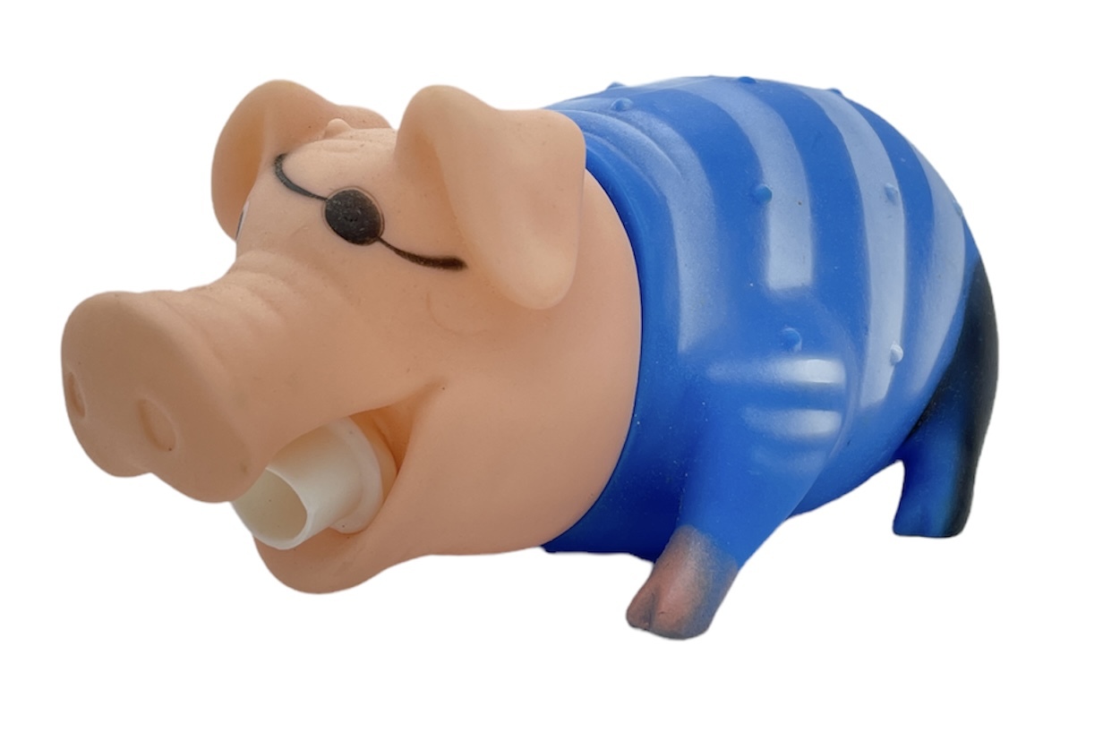Игрушка для собак и не только с пищалкой "Кричащая свинья пират-супермен" "хрюкающая свинка" средняя