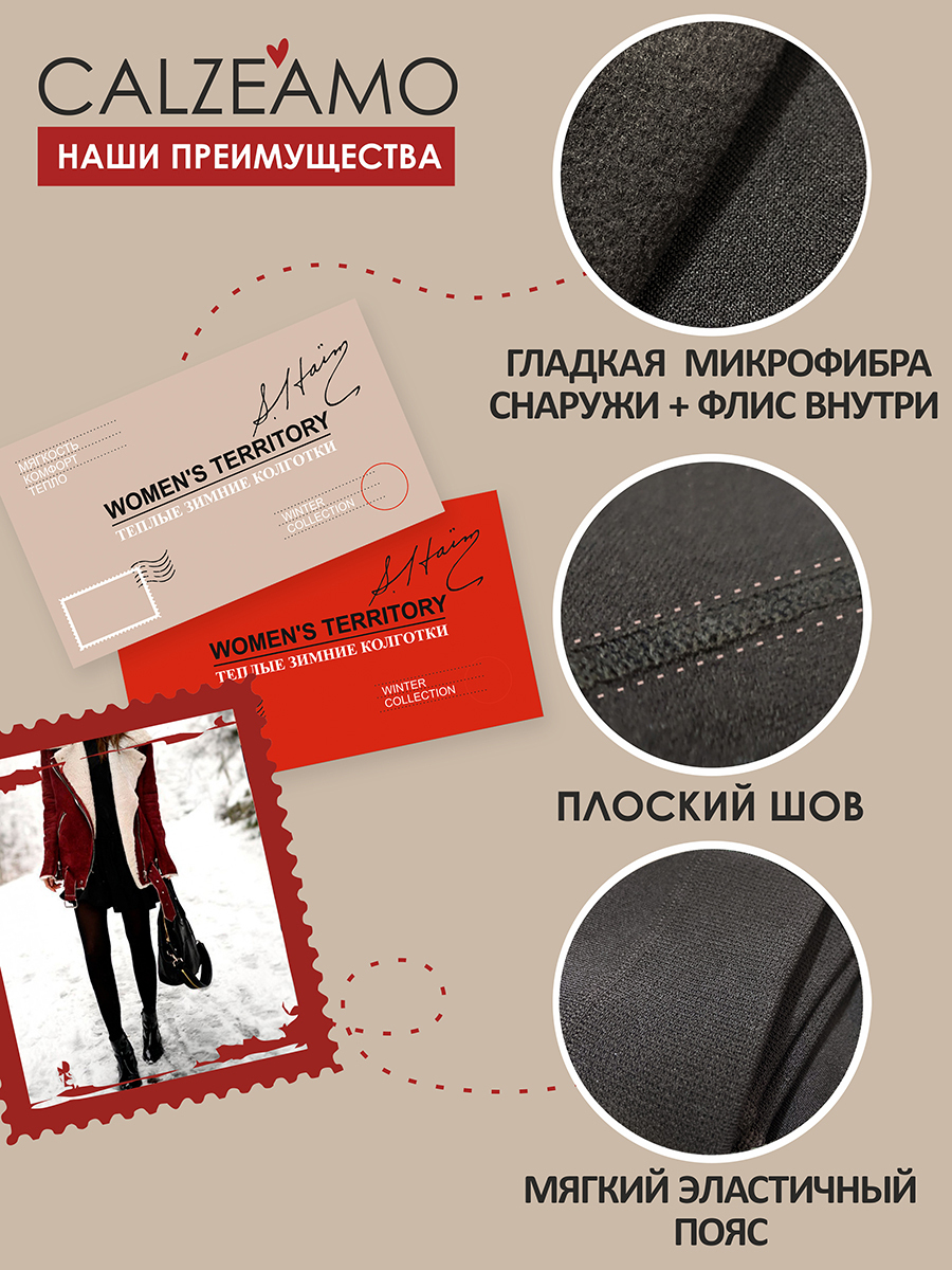 Колготки CALZEAMO Soft Fleece 250 черный, 100 den и выше, 1 шт