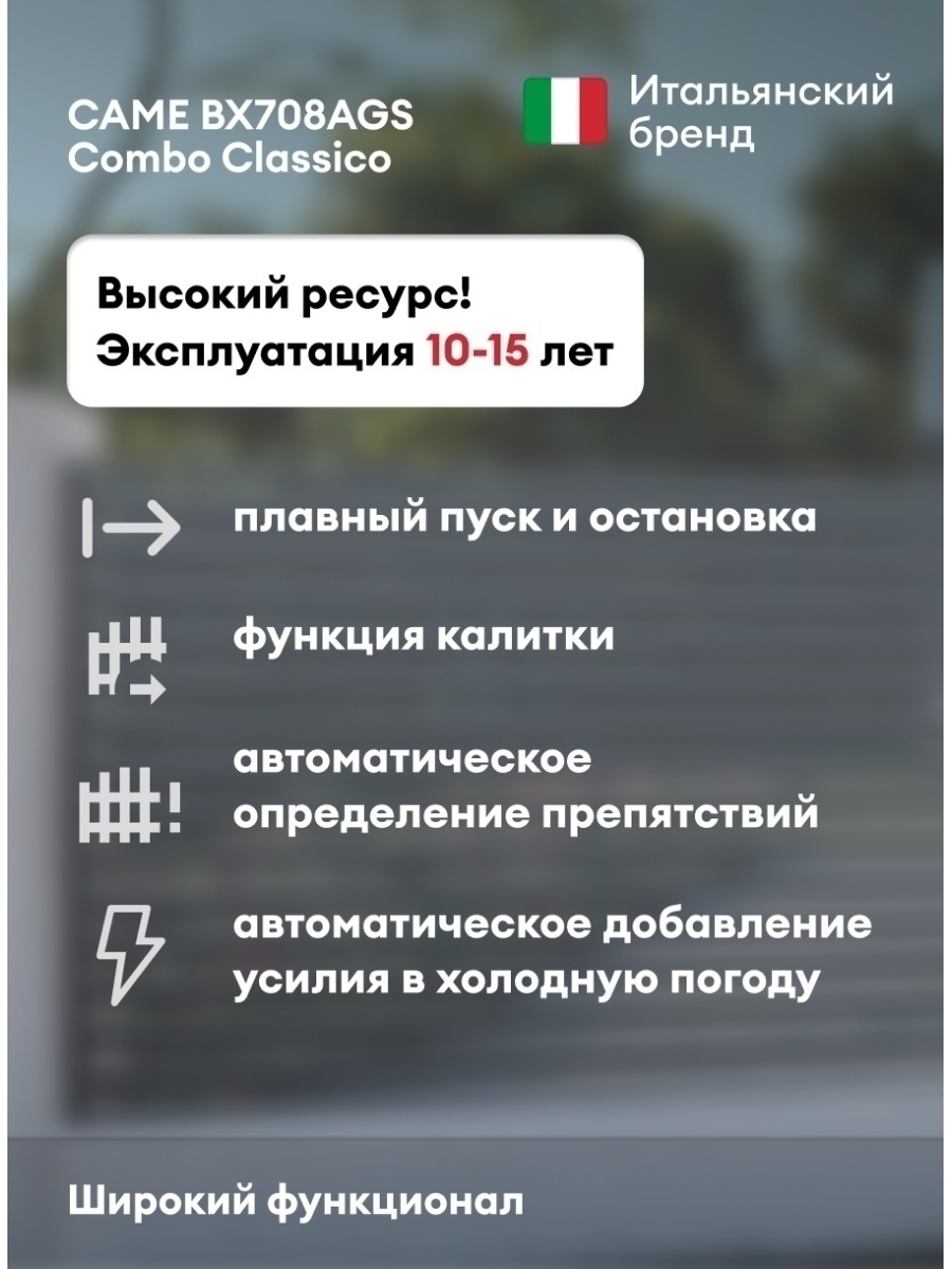 Комплект привода для откатных ворот Came BX708AGS, до 800 кг, 2 пульта, 5 реек, фотоэлементы, лампа