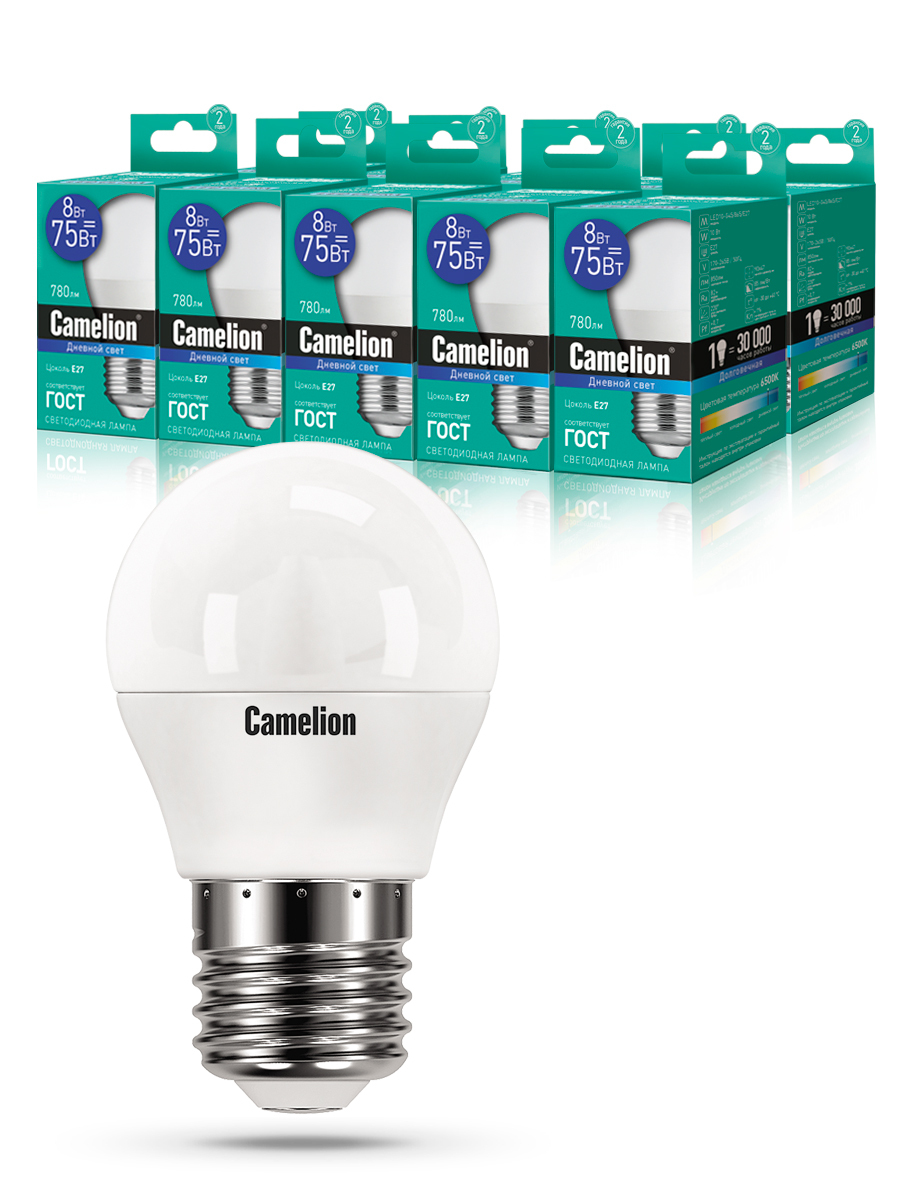 Лампочка Camelion cam-led-G45, Холодный белый свет, E27, 8 Вт, Светодиодная, 10 шт.