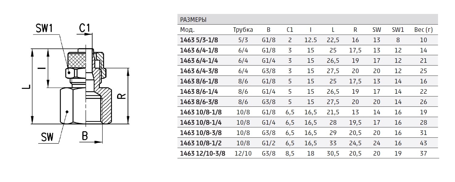 Накидная гайка 1463 6/4-1/8 BSP CAMOZZI
