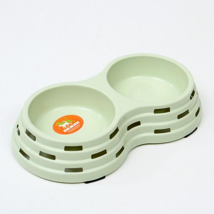 Миска металлическая двойная на пластиковом основании/25 х 14 х 5 см/зеленая/160 мл