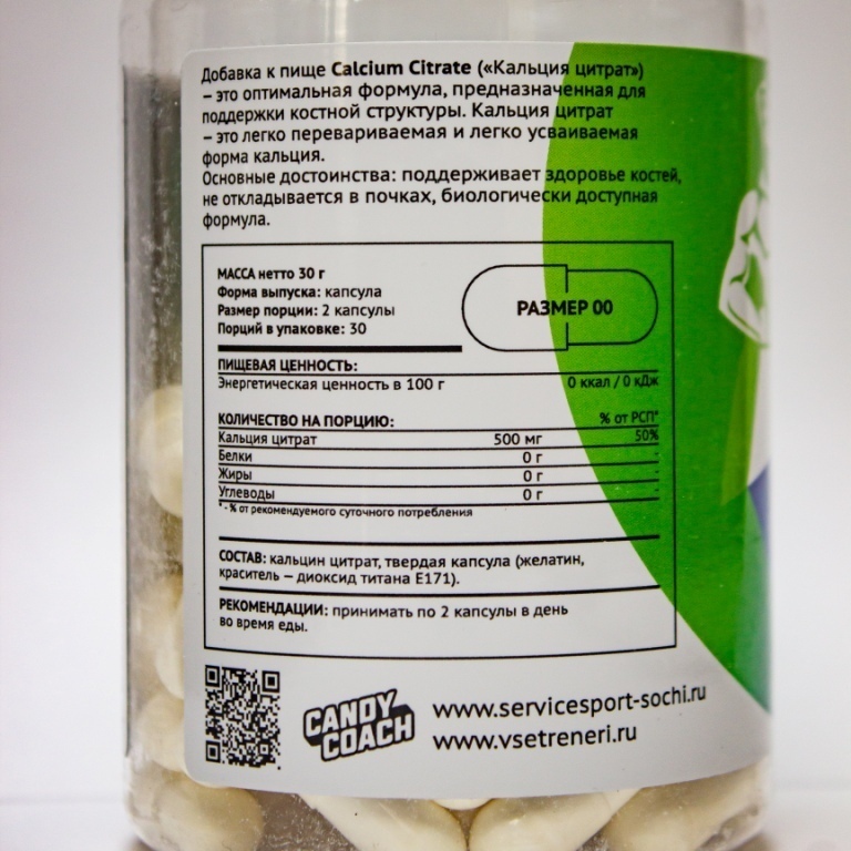 Кальций Цитрат Calcium Citrate 500mg 60 Caps Candy Coach