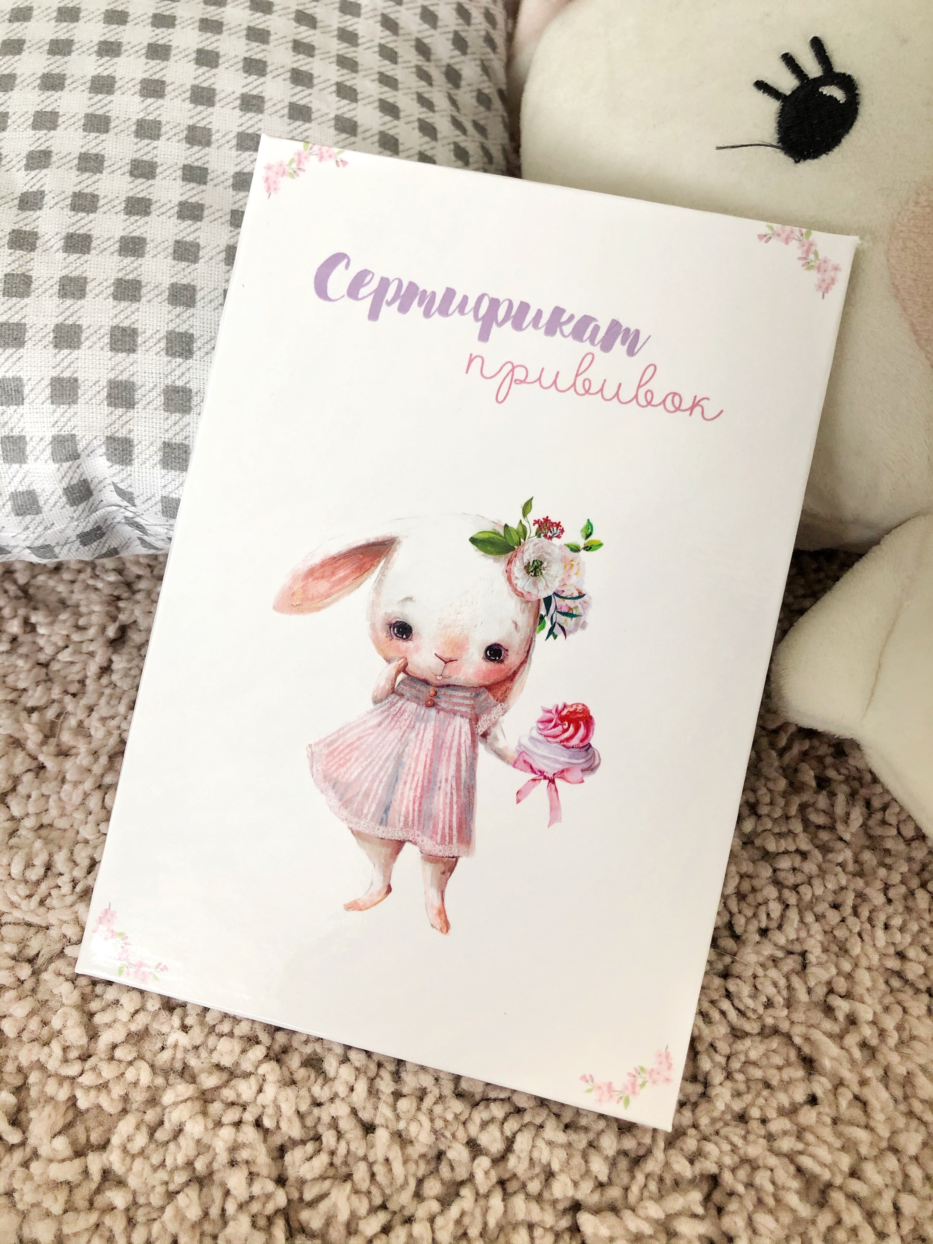 Сертификат для прививок "Зайка с пироженкой"