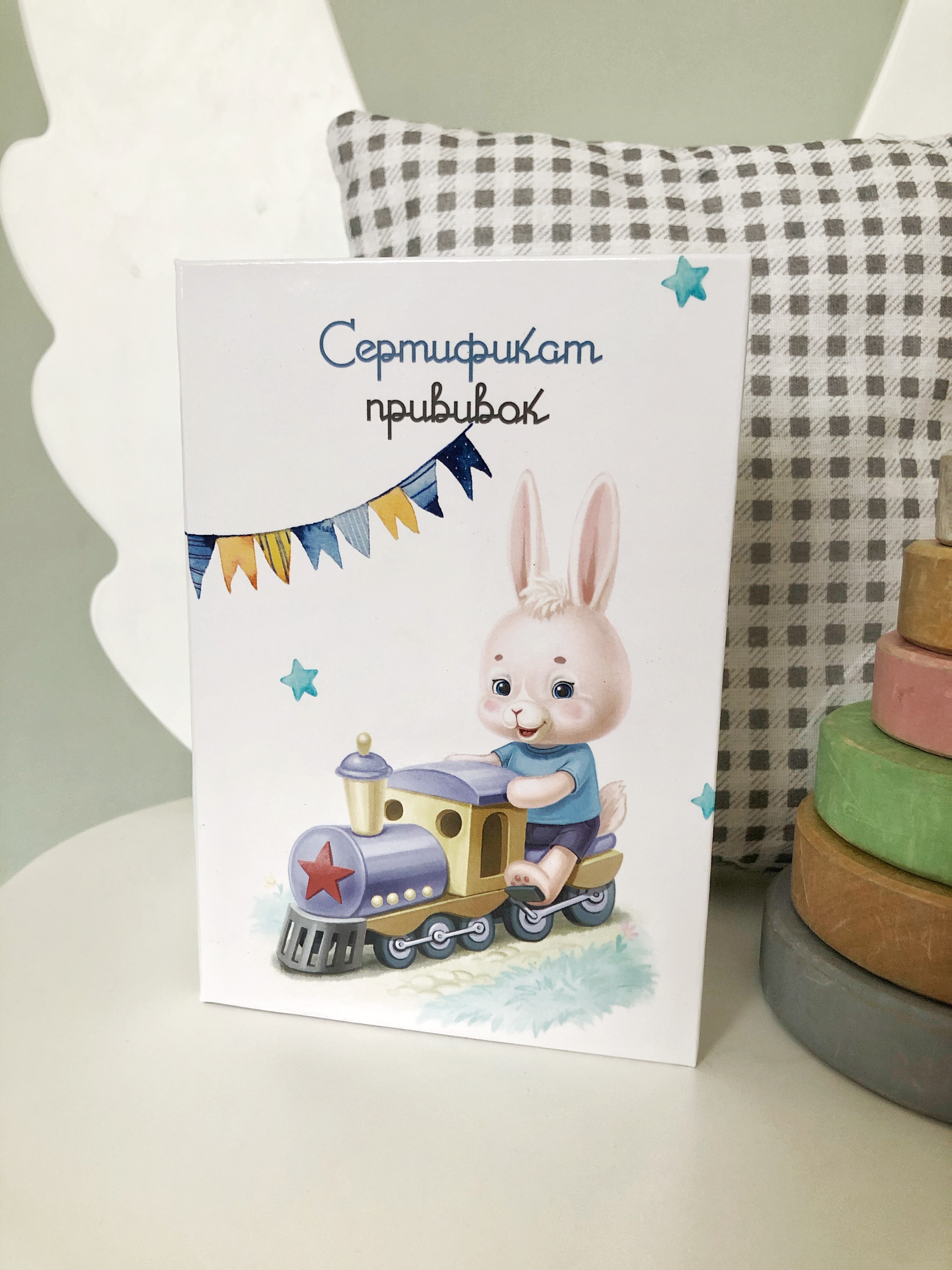 Сертификат прививок "Зайчик на поезде"