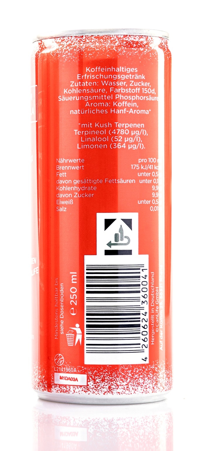 Упаковка немецкой колы "Kush Kola" TM CanLife - безалкогольный напиток Cannabis Kola на растительной основе, 12 банок по 250 мл
