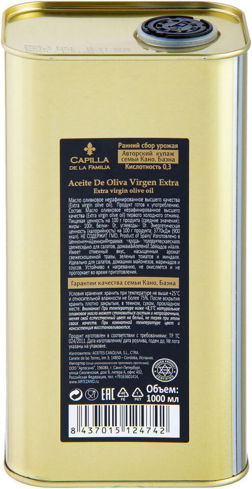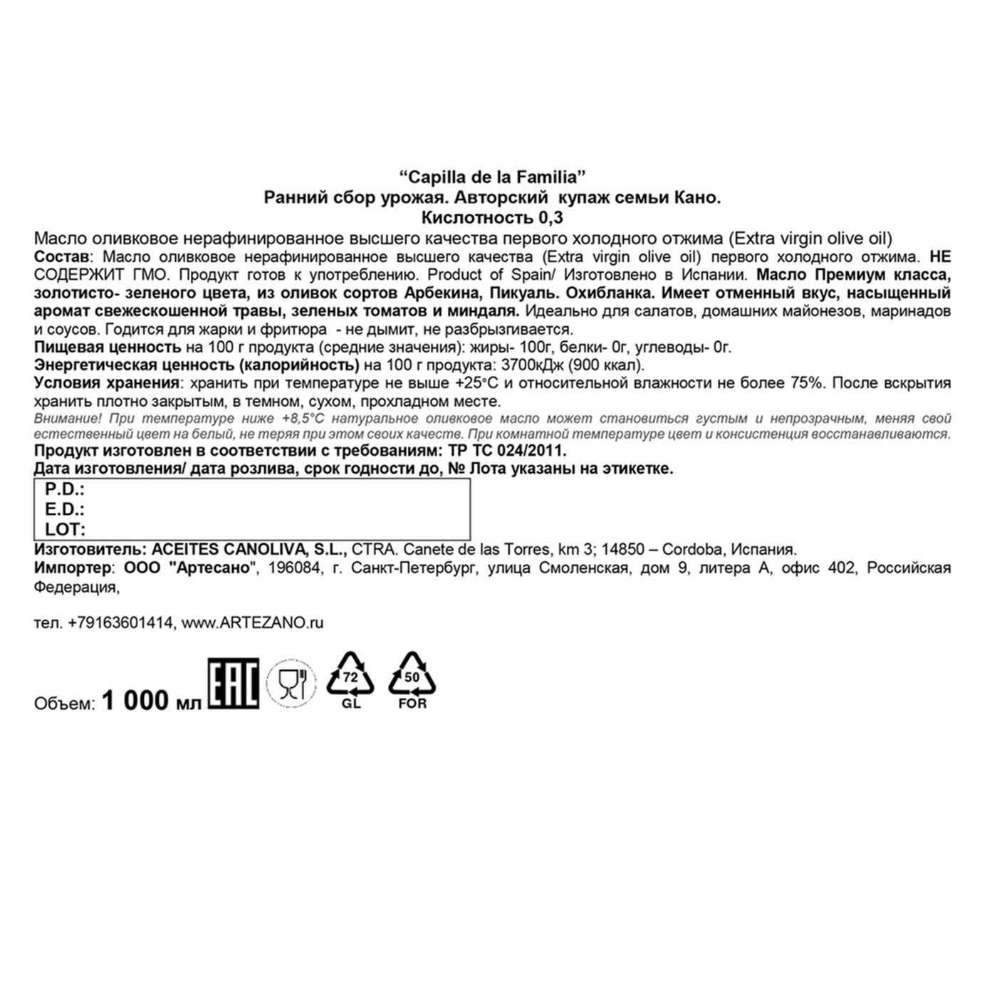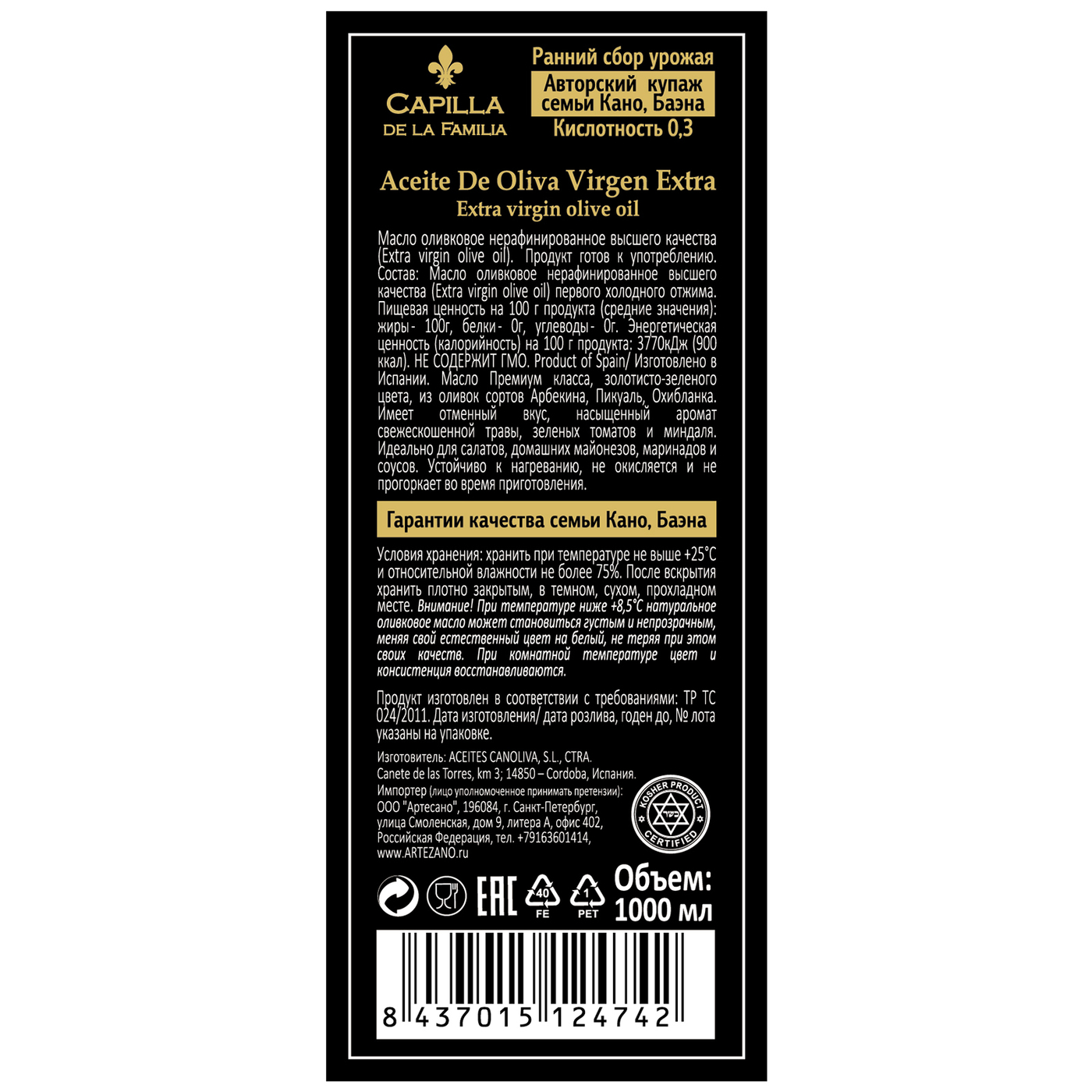 Кошерное Оливковое Масло Extra Virgin, Capilla de la Familia, 1 л
