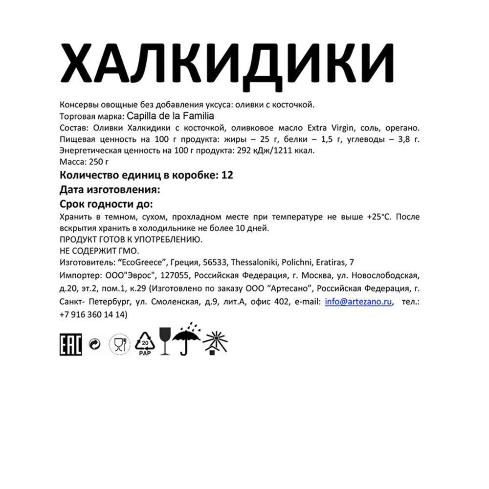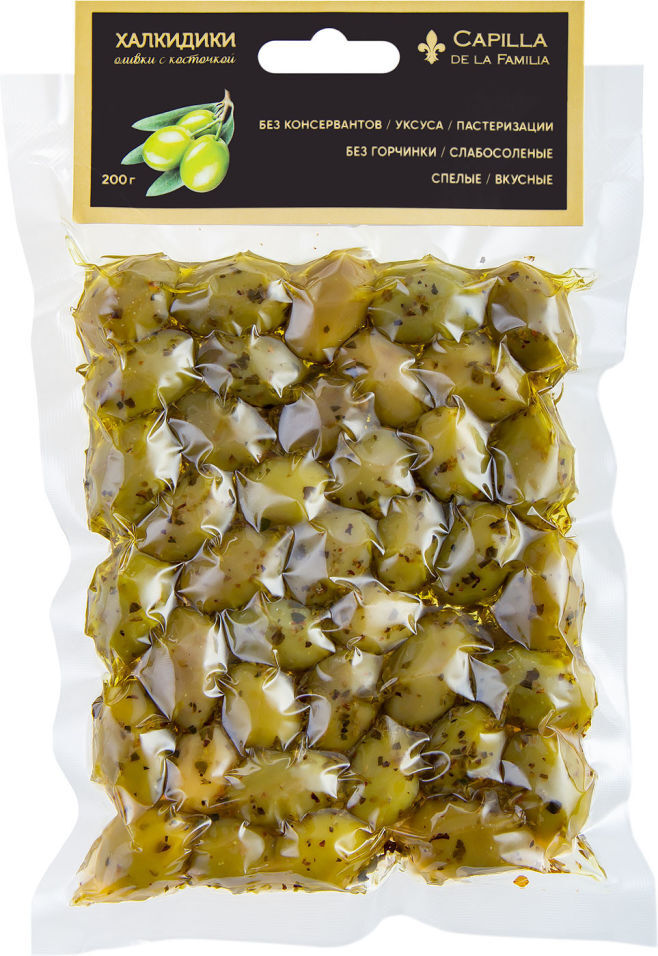 Оливки с косточкой ХАЛКИДИКИ LARGE 200г "Capilla de la Familia"
