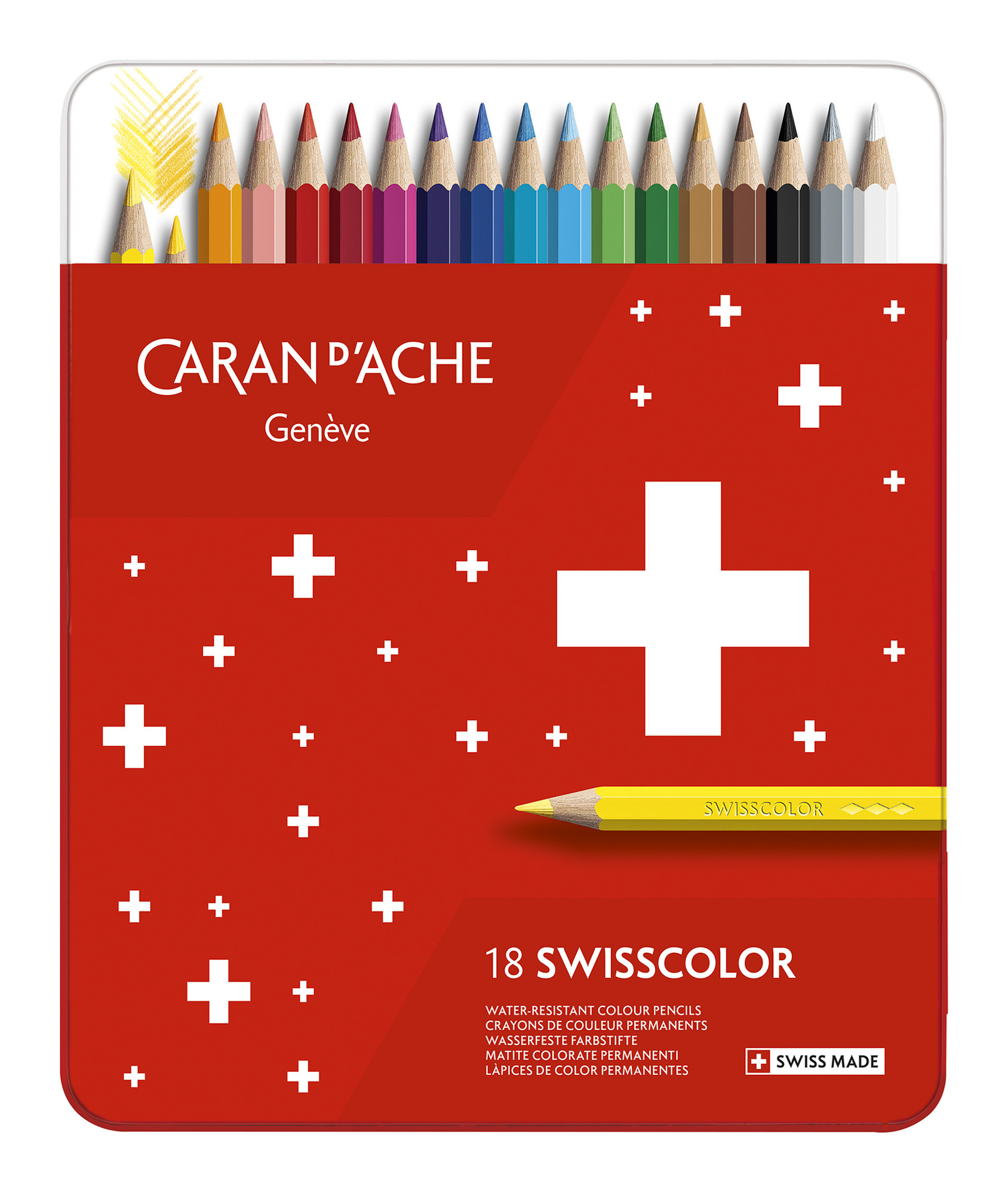 Карандаши цв. Carandache 1284.718 Swisscolor перманентный шестигран. дерево мет.кор. (18шт)