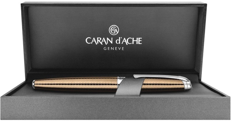 Ручка роллер Carandache Leman Caviar 4779.497 коричнево-золотая, в подарочной коробке (277003)