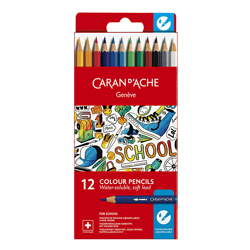 Набор карандашей цветных Carandache School line, Aquarellе, 12 цветов, картонная коробка 12 цветов