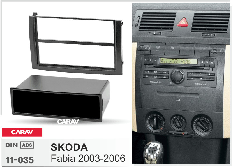 Переходная рамка 1-DIN (CARAV 11-035) SKODA Fabia 2003-06 (с карманом)