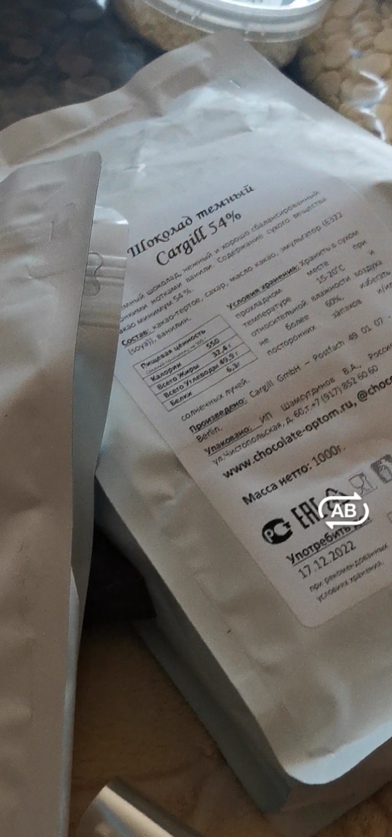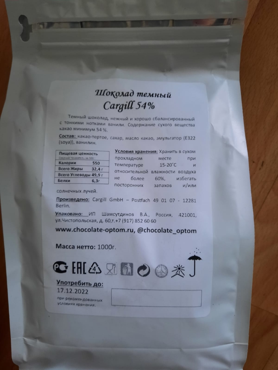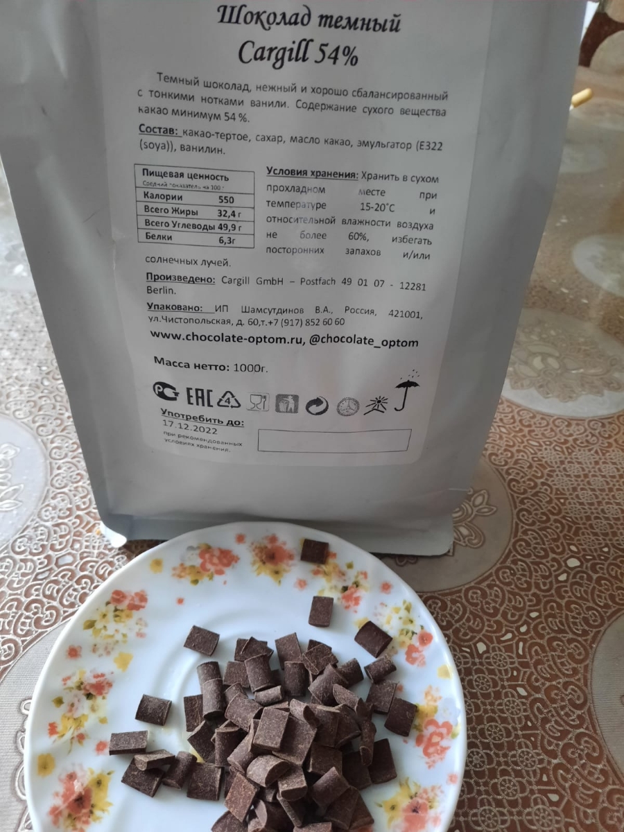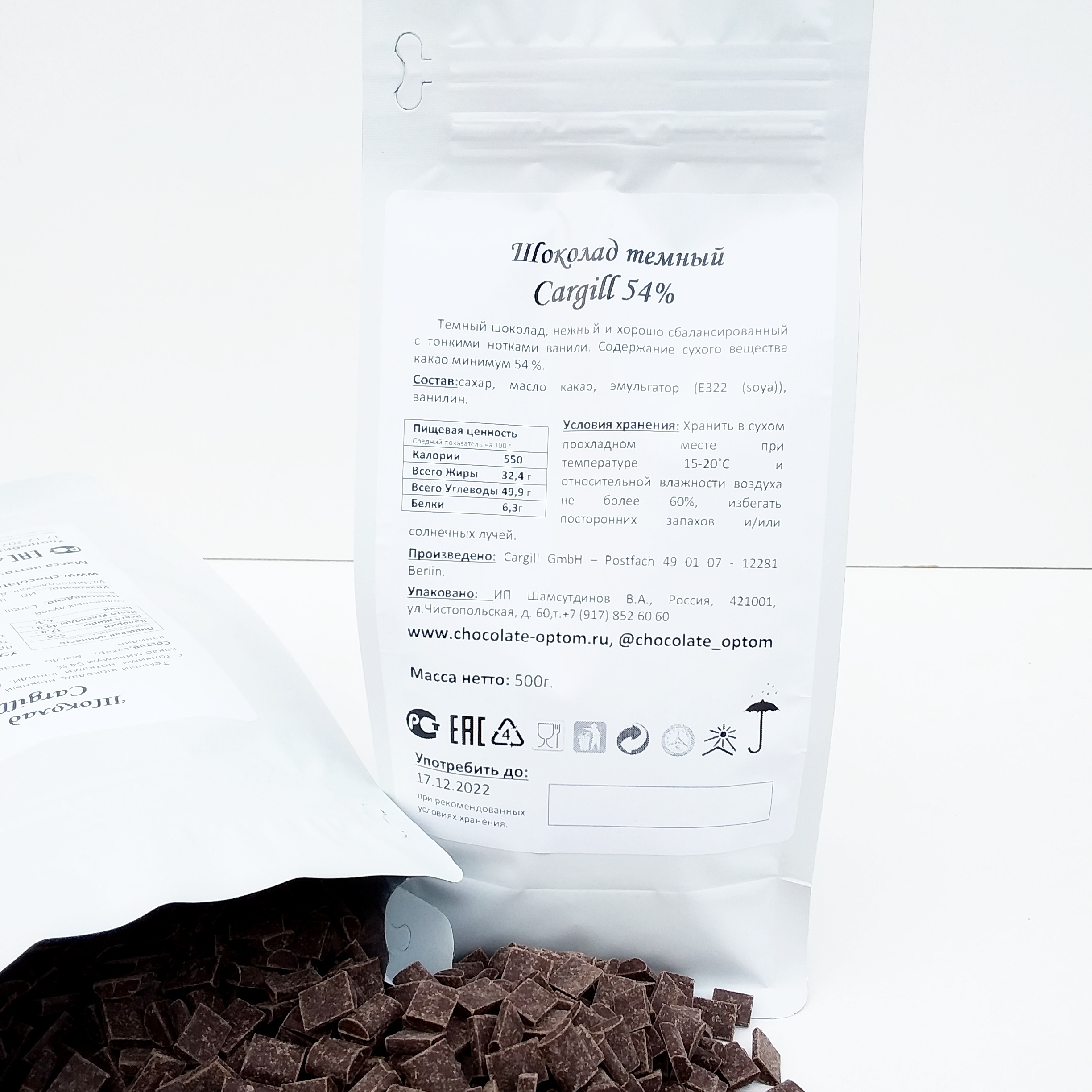 Шоколад темный 54% какао в дисках Cargill, 500 гр.