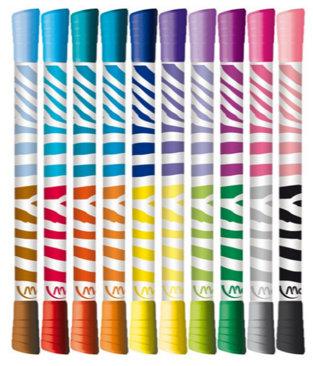 Фломастеры 10 цветов двусторонние Carioca Birello 2.6 4.7 мм, смываемые, картон