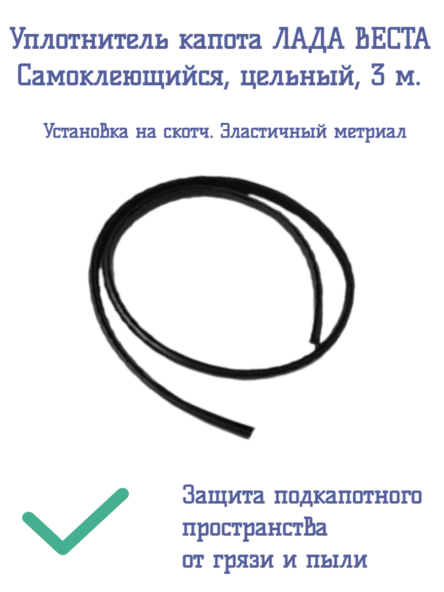 Уплотнитель капота Лада Веста цельный, 3 метра / Уплотнитель капота универсальный