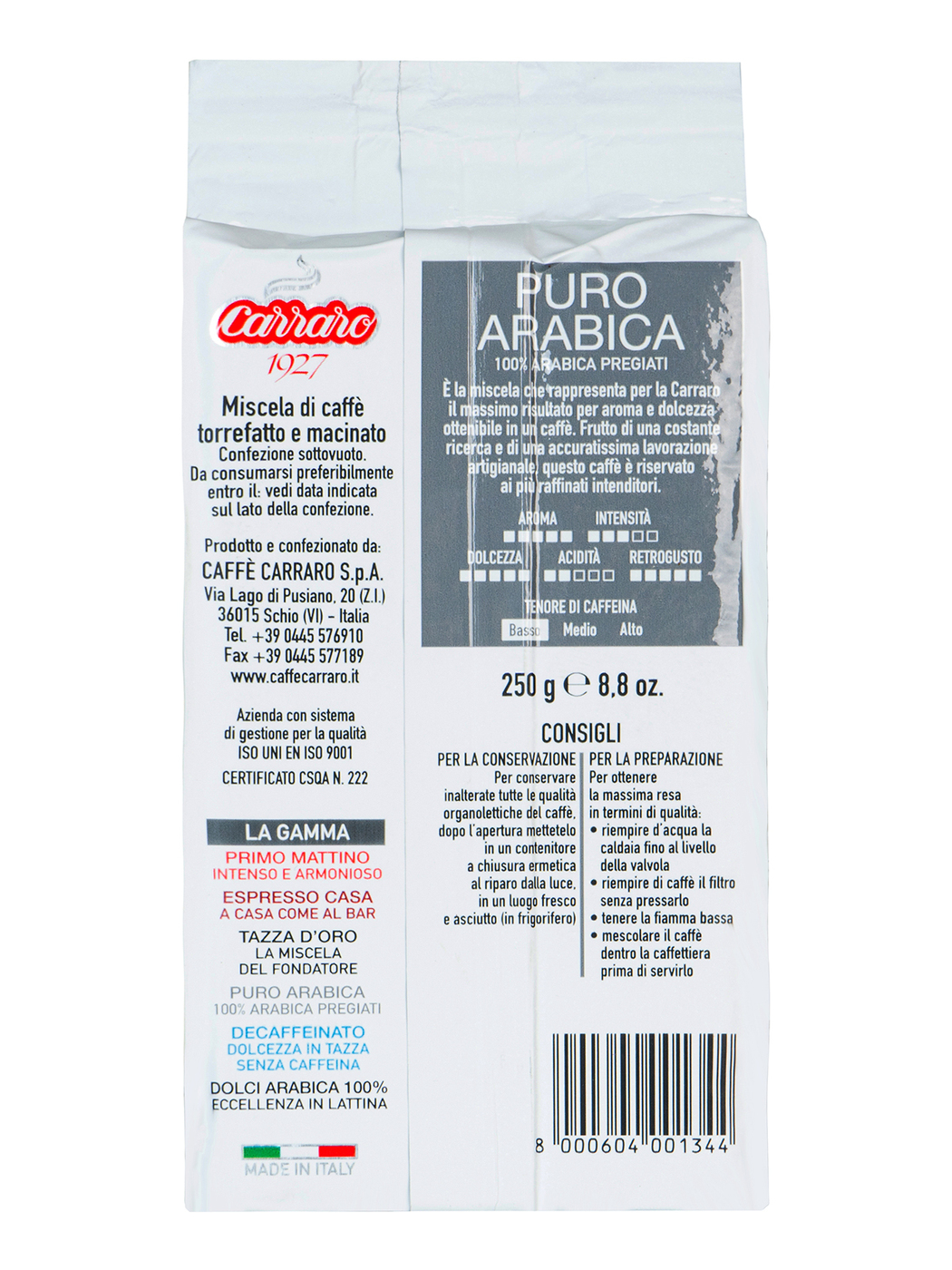 Carraro 1927 Arabica 100% кофе молотый, 250 г