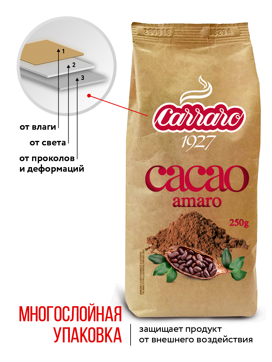 Растворимое какао Carraro Cacao Amaro в банке, 250 гр