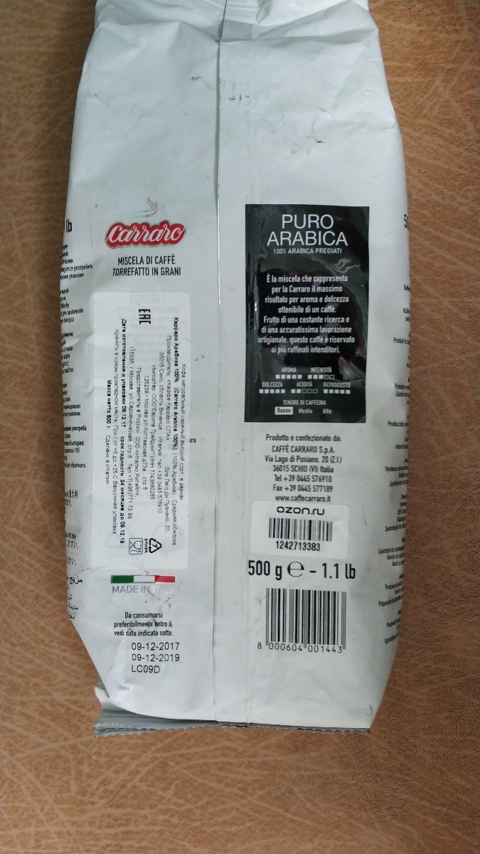 Кофе в зернах Carraro caffe Globo Verde (Карраро Глобо Верде), 1 кг, вакуумная упаковка