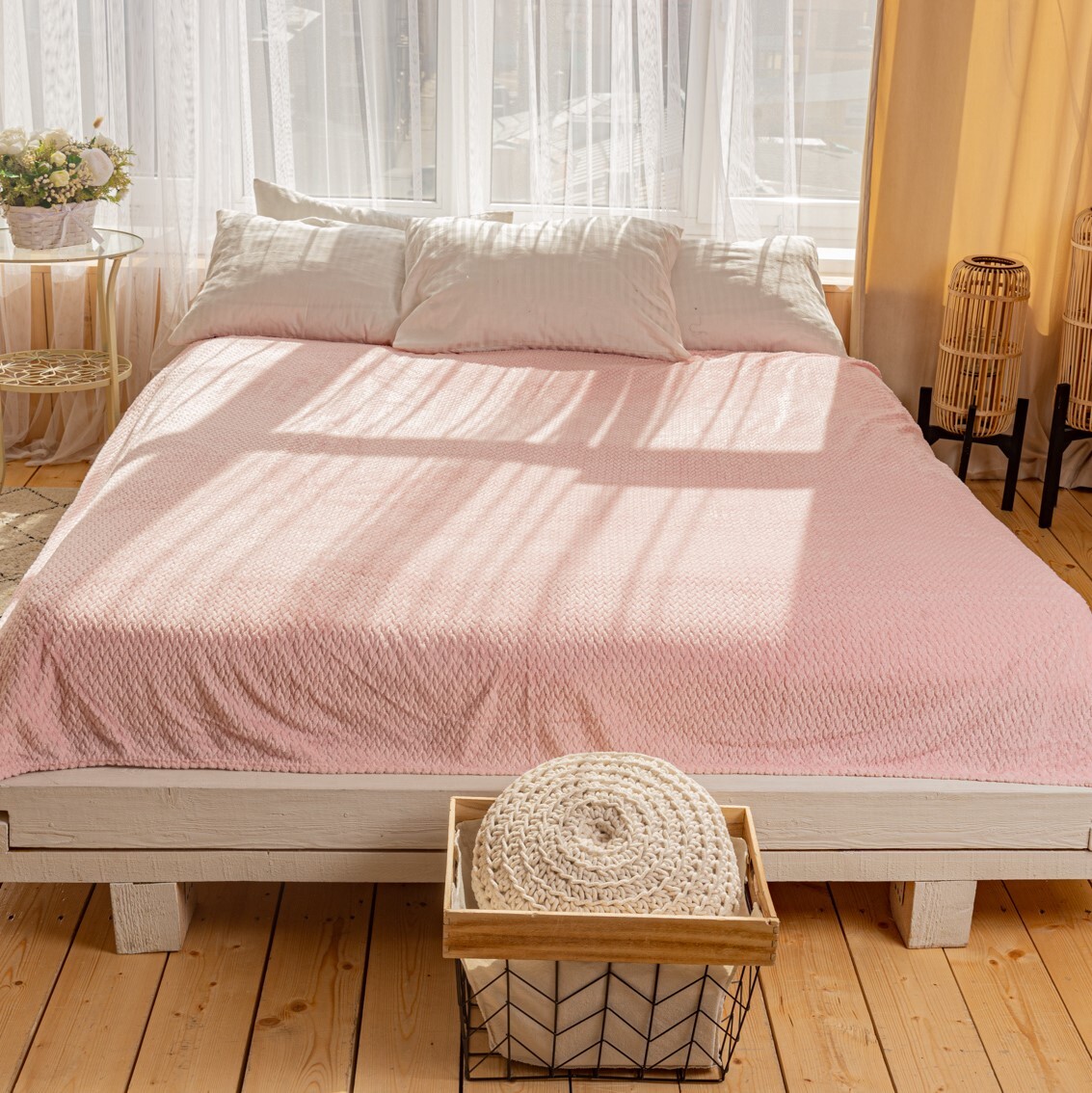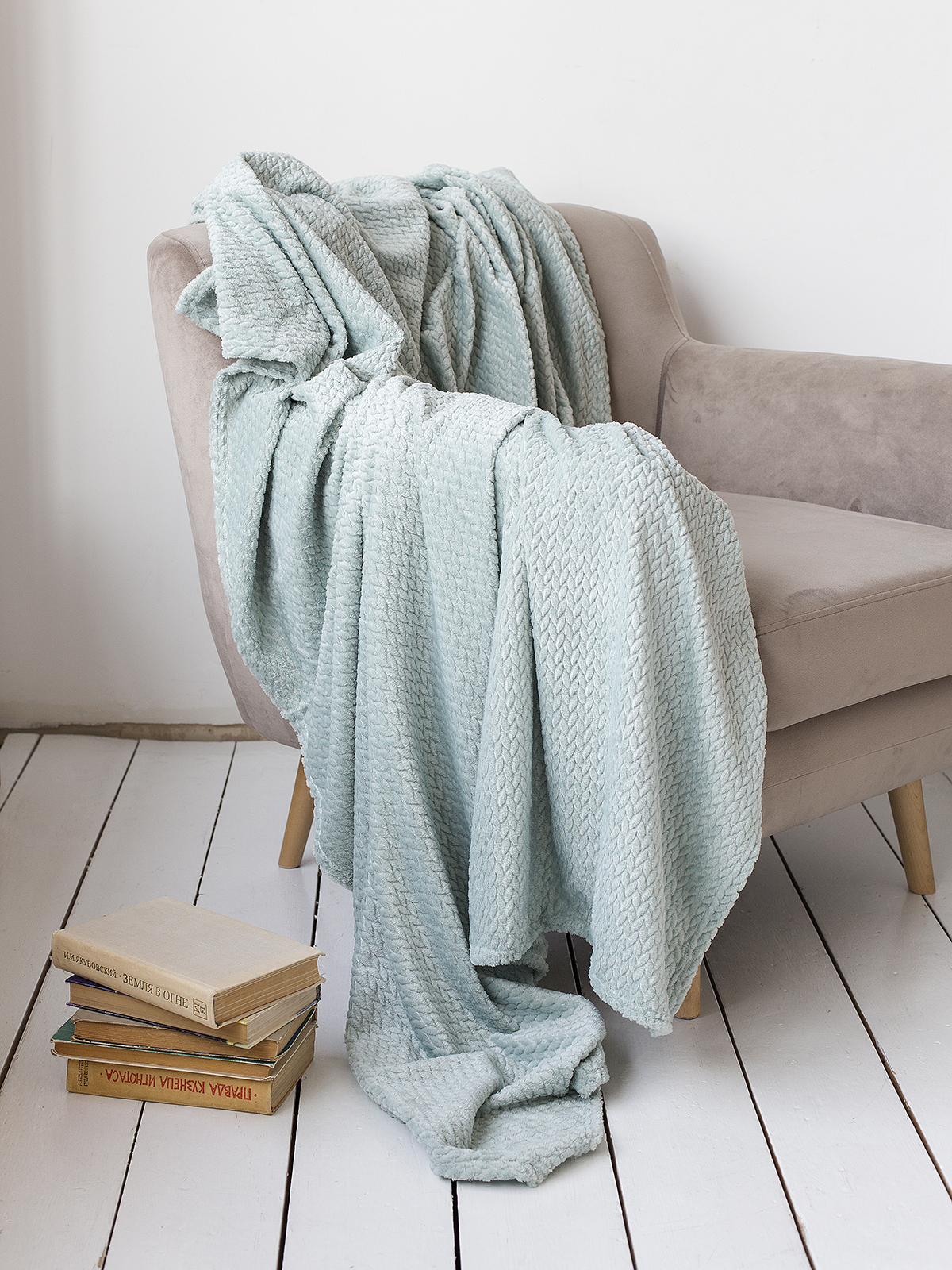 Фактурный плед покрывало Casa Conforte "Nonna", микрофибра, велсофт, полиэстер, 200х220см, евро размер, объемные косы, ментоловый