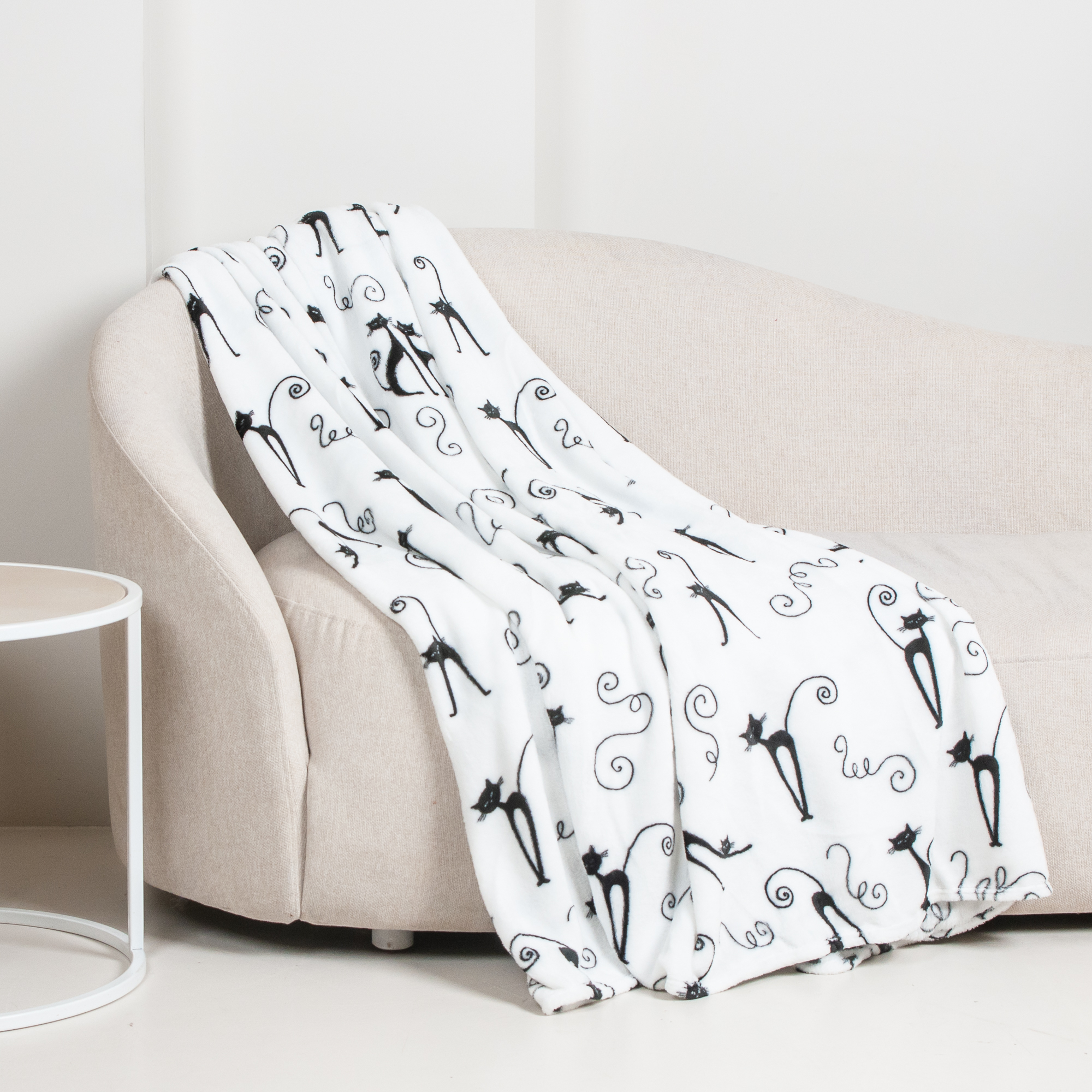 Гладкий двуспальный плед покрывало Casa Conforte "Kamelia", микрофибра, велсофт, полиэстер, 180х200см, белый, с черным рисунком