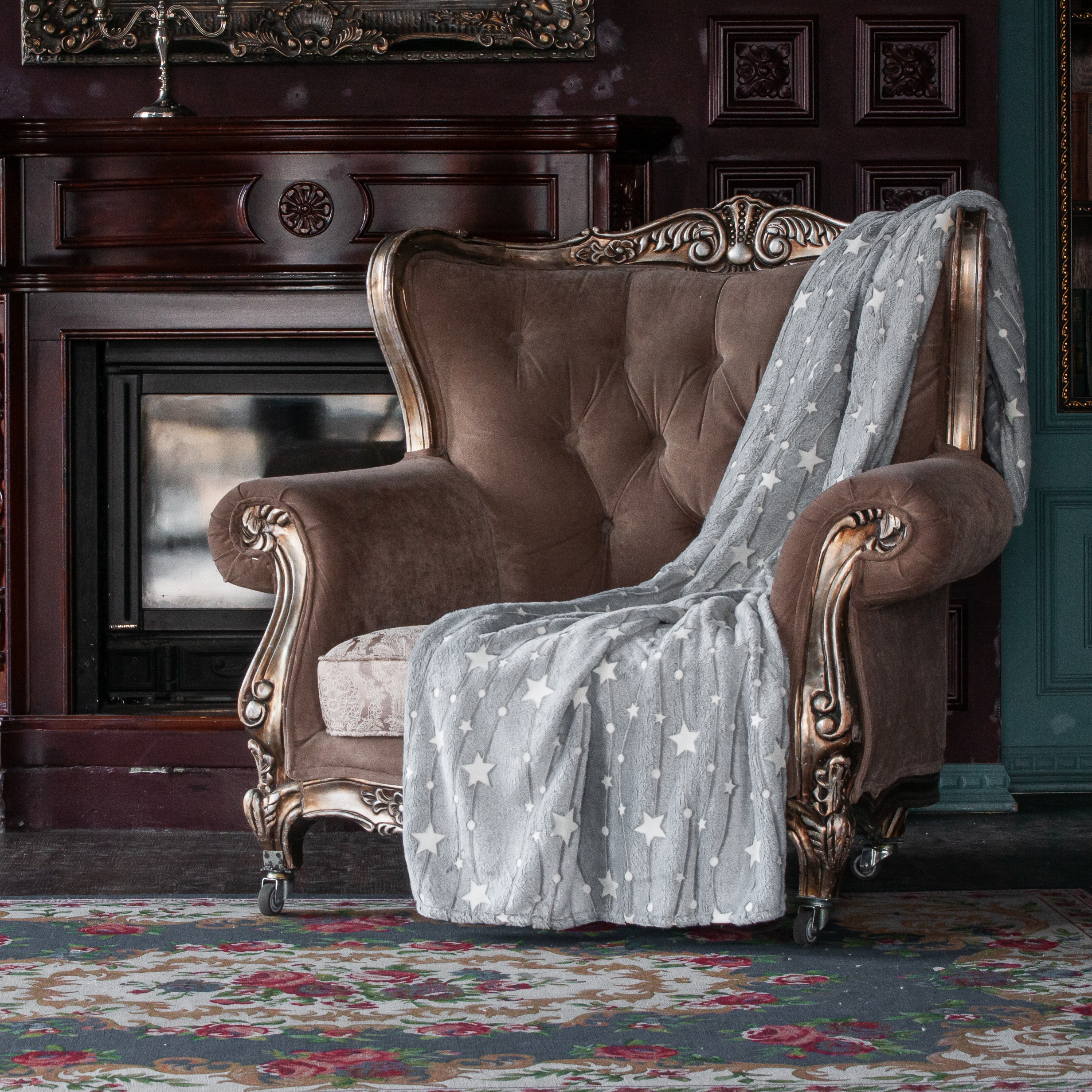 Гладкий двуспальный плед покрывало с рисунком Casa Conforte "Festival", микрофибра, велсофт, полиэстер, 180х200см, корги, серый