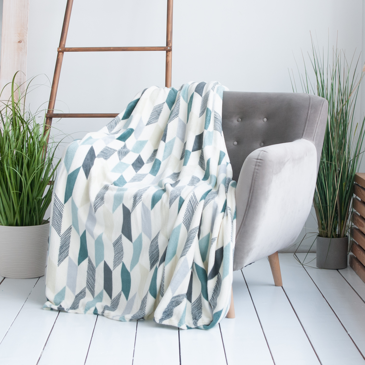 Гладкий двуспальный плед покрывало Casa Conforte "Kamelia", микрофибра, велсофт, полиэстер, 180х200см, белый, с черным рисунком