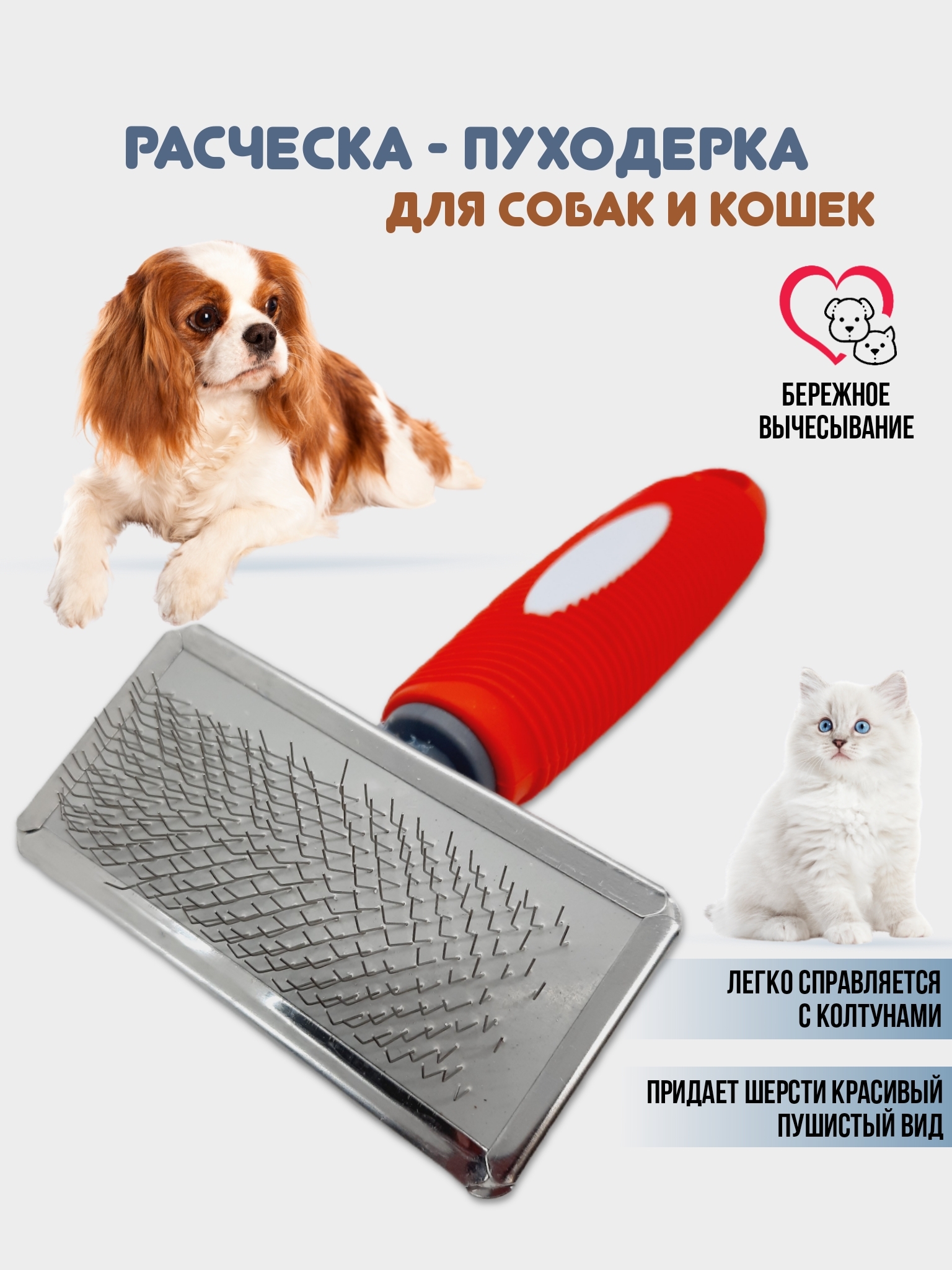 Щетка пуходерка для шерсти животных. Расческа для собак и кошек. Щетка от колтунов (Красная)