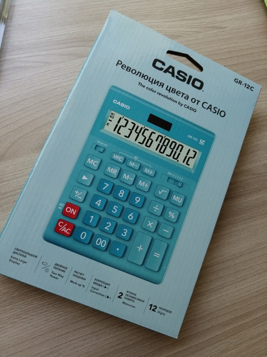 Настольный калькулятор Casio GR-12, 12 разрядный, голубой