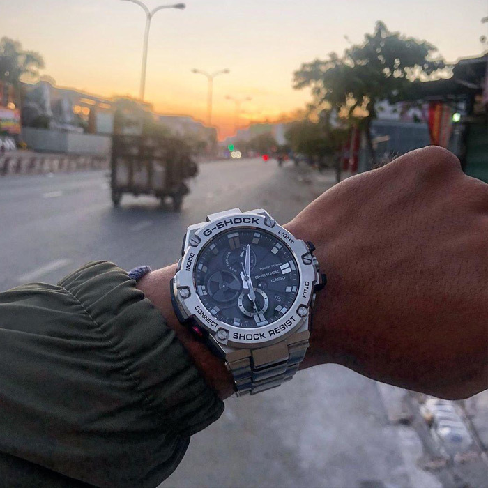 Противоударные мужские часы на солнечной батарее Casio G-Shock GST-B100D-1A с Bluetooth (Блютуз)