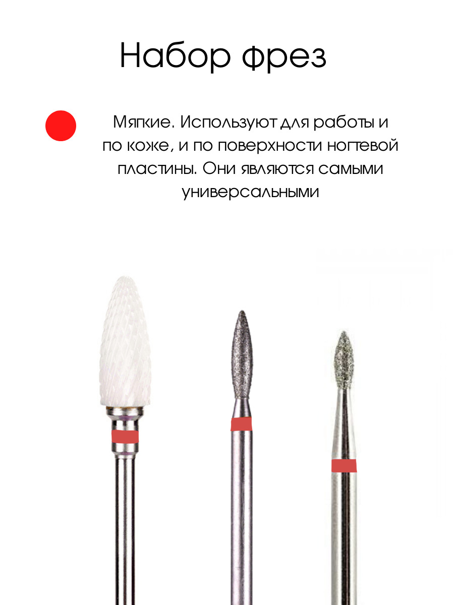 Cececoly Набор керамических фрез для маникюра и педикюра с желтой насечкой (кукуруза, шар, конус)