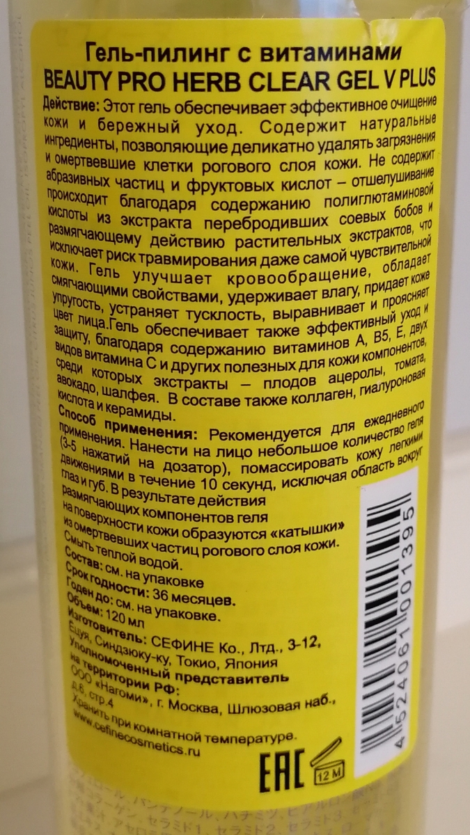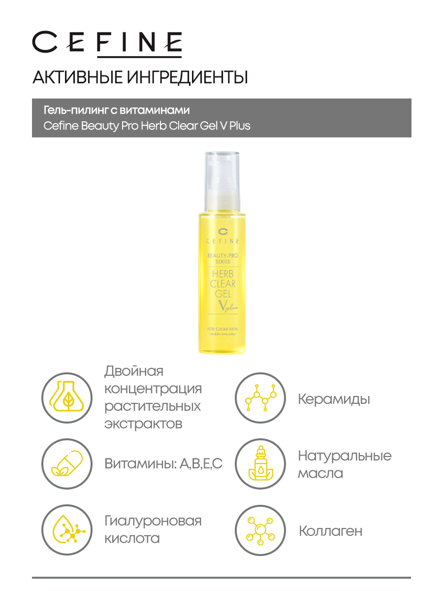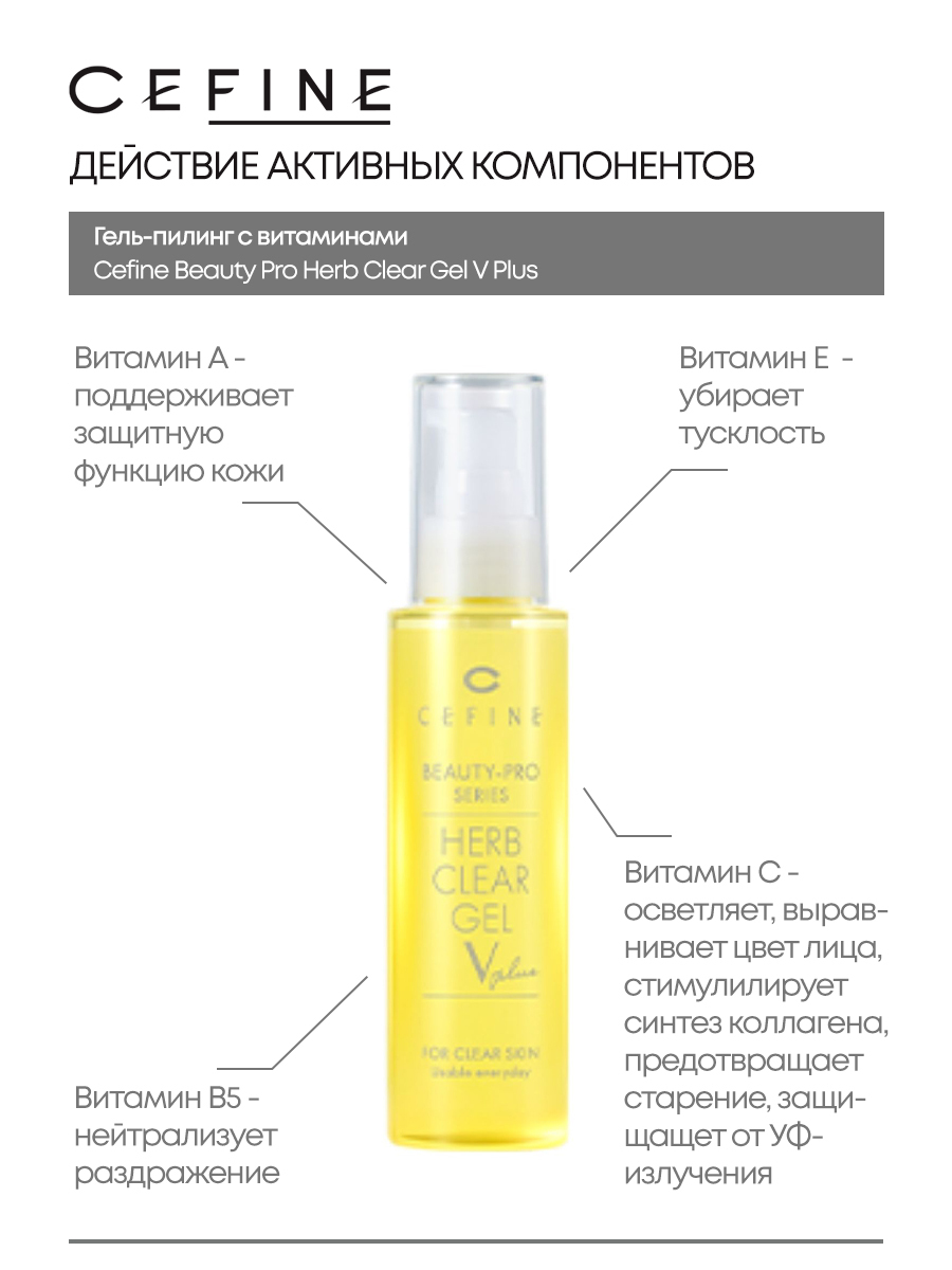Пилинг гель скатка для лица с витаминами Cefine Beauty Pro Herb Clear Gel V Plus 120 мл