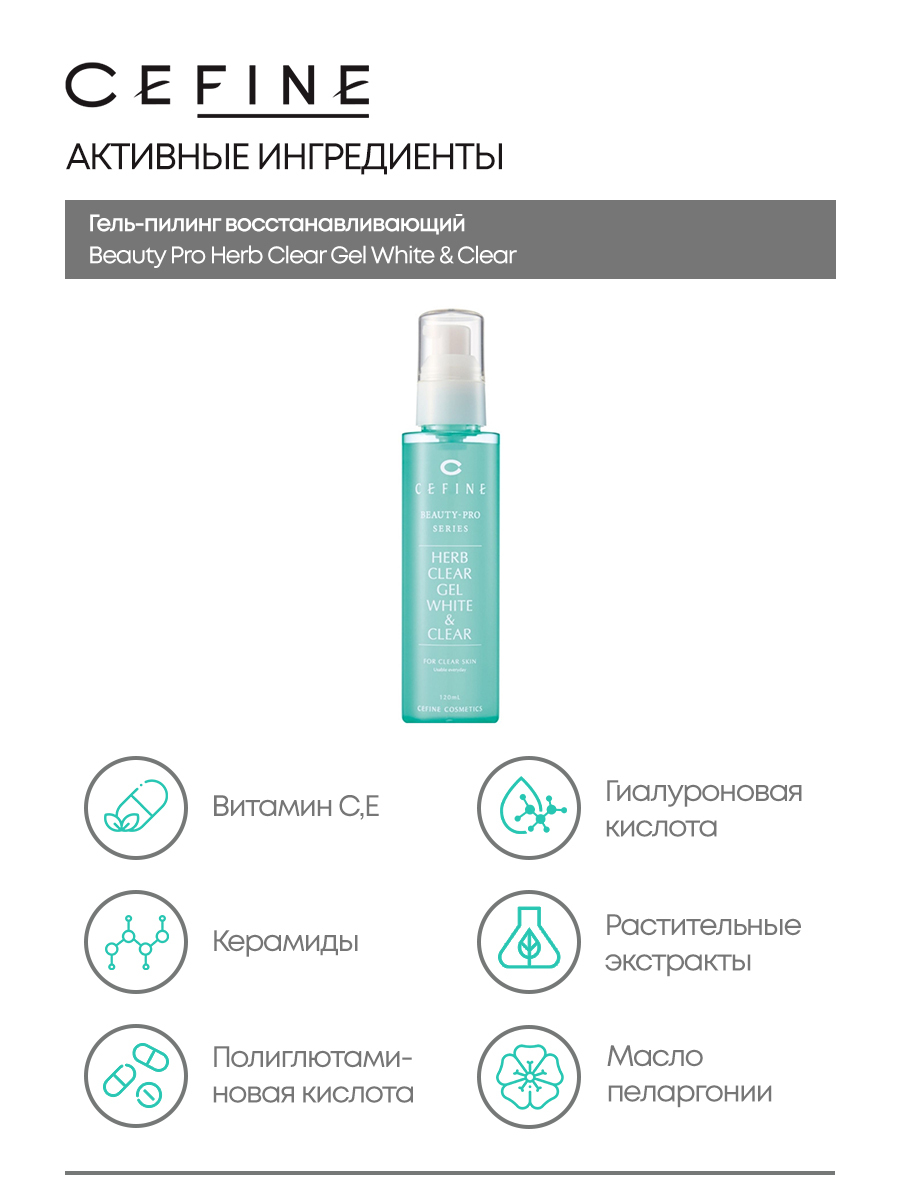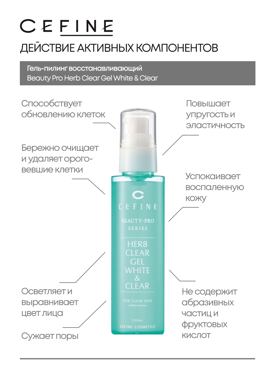 CEFINE Пилинг гель скатка для лица осветляющий Beauty-Pro Series Herb Clear Gel White & Clear 120 мл