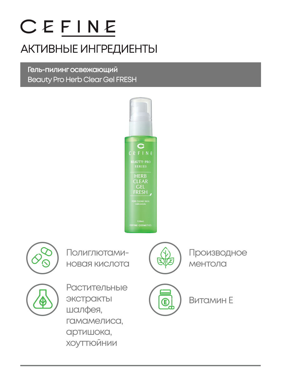 Очищающий пилинг-гель для лица CEFINE Beauty-Pro Series Herb Clear Gel Pure 120 мл