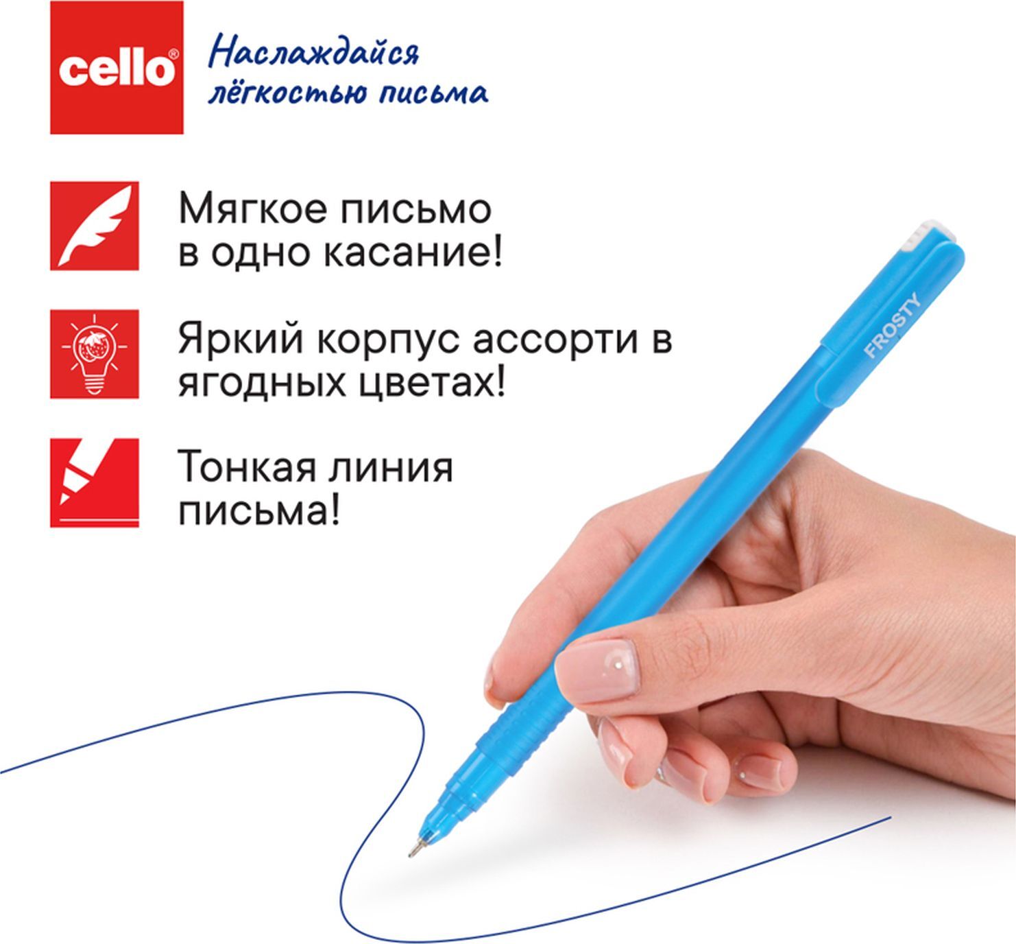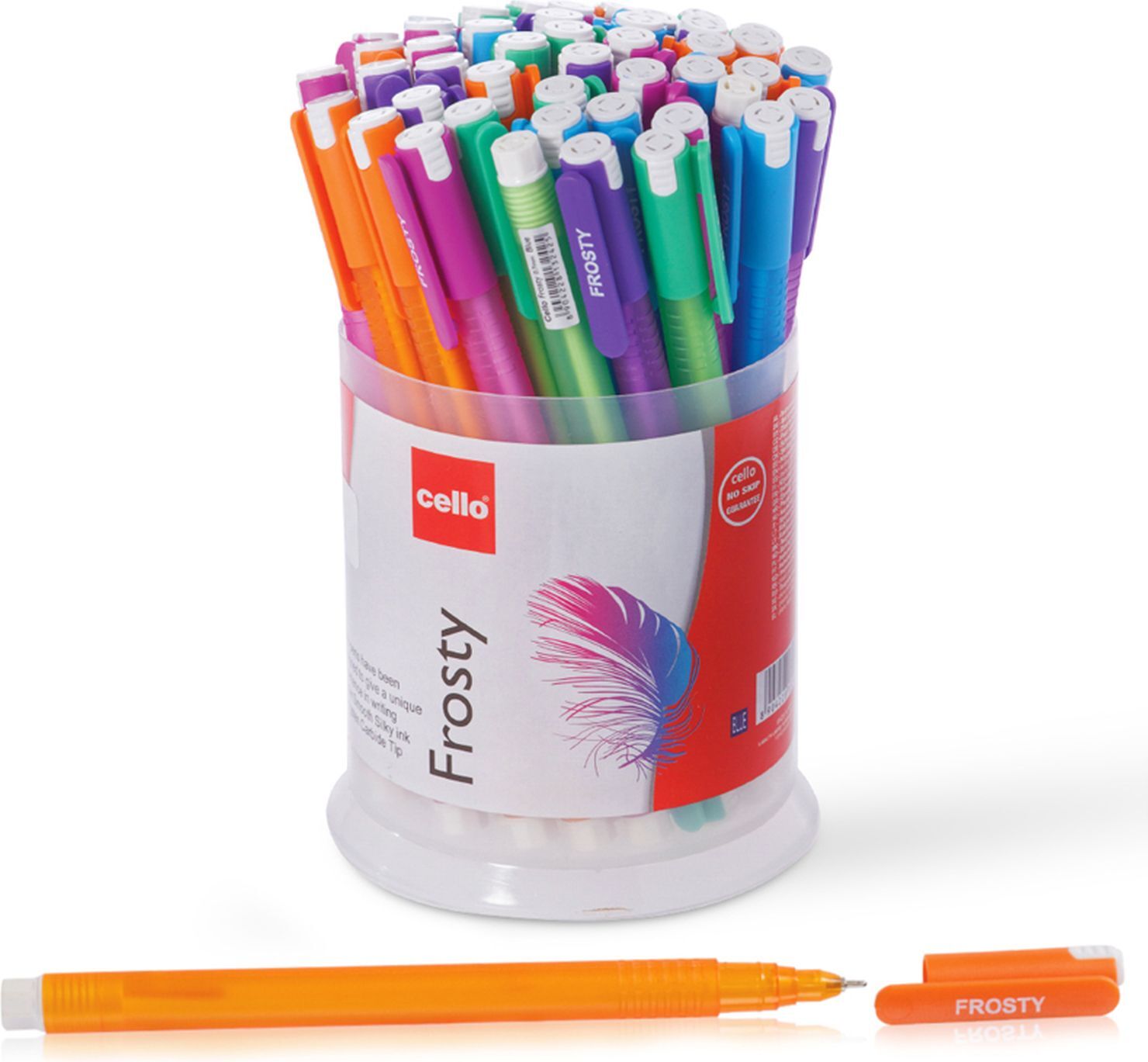 Ручка шариковая Cello Frosty синяя 0,7 мм, корпус цвета ассорти, 50 штук