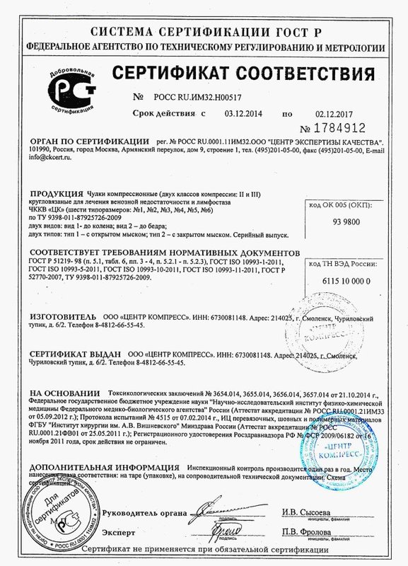 Моночулок Центр Компресс 2 класс компрессии до колена, кругловязаный