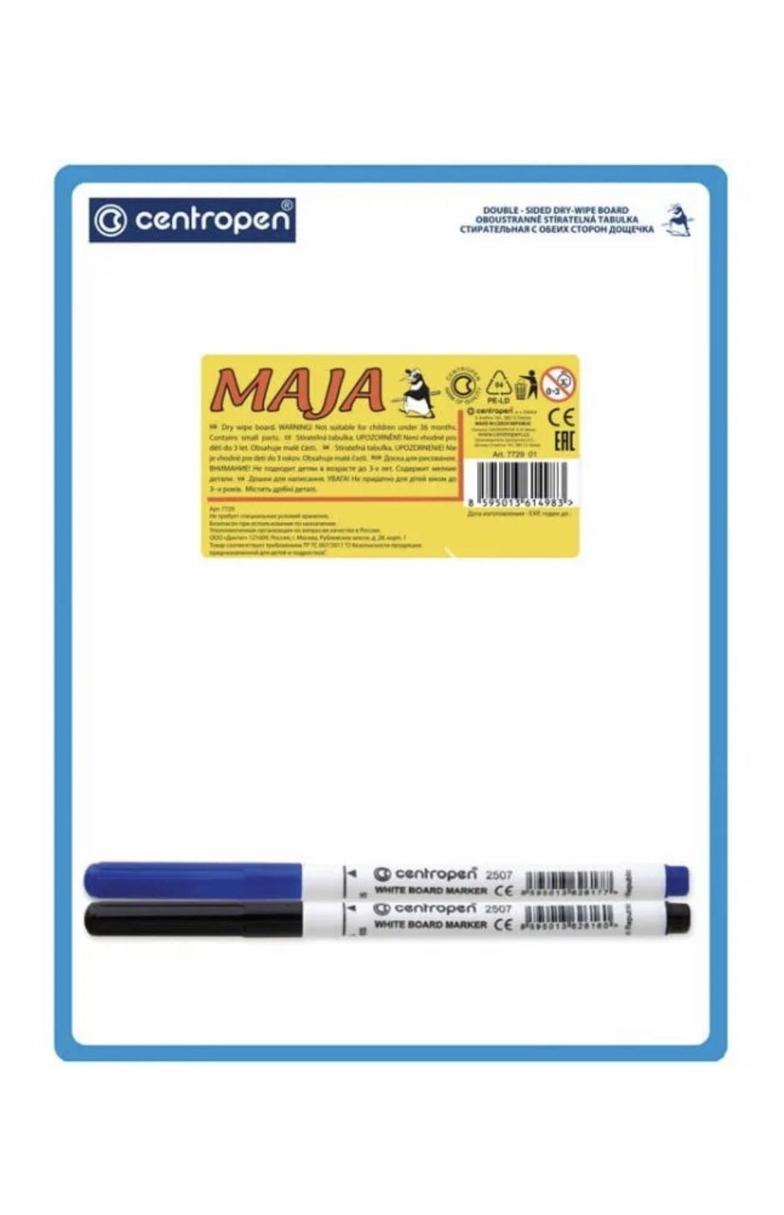 Доска маркерная малая 18х24 см А5+ двухсторонняя CENTROPEN + 2 маркера (син, черн)